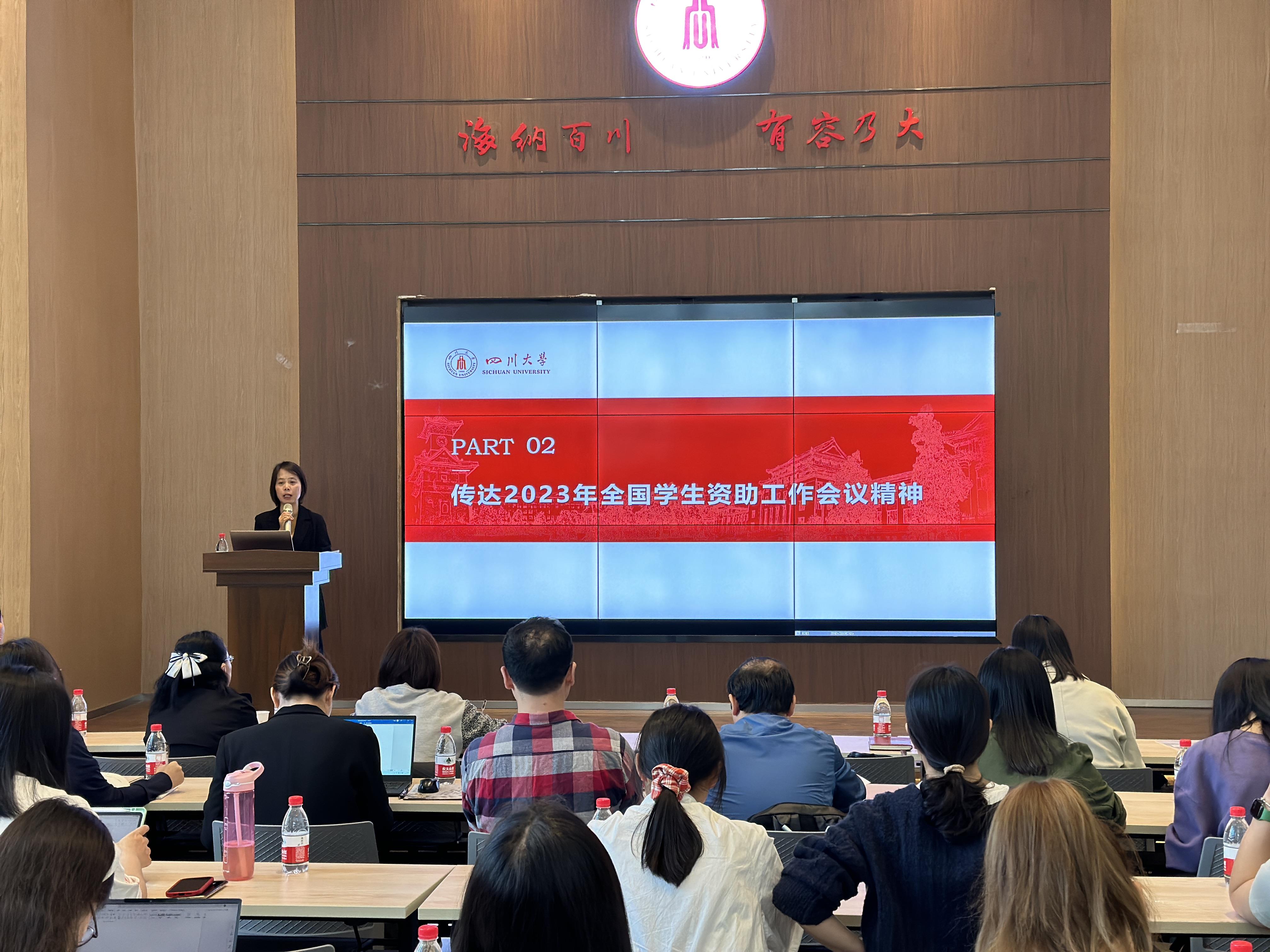 为深入贯彻落实党的二十大精神,推进新时代学生资助、民族学生工作高质量发展, 4月27日下午,学工部在江安校区22舍报告厅召开资助、民族学生工作专题培训会,集体学习了2023年全国学生资助工作会议和四川省高校少数民族学生教育管理专题会议的相关精神。学工部副部长卢希芬、各学院资助专职老师、学生资助中心和民族学生事务办公室全体老师参加了本次会议。