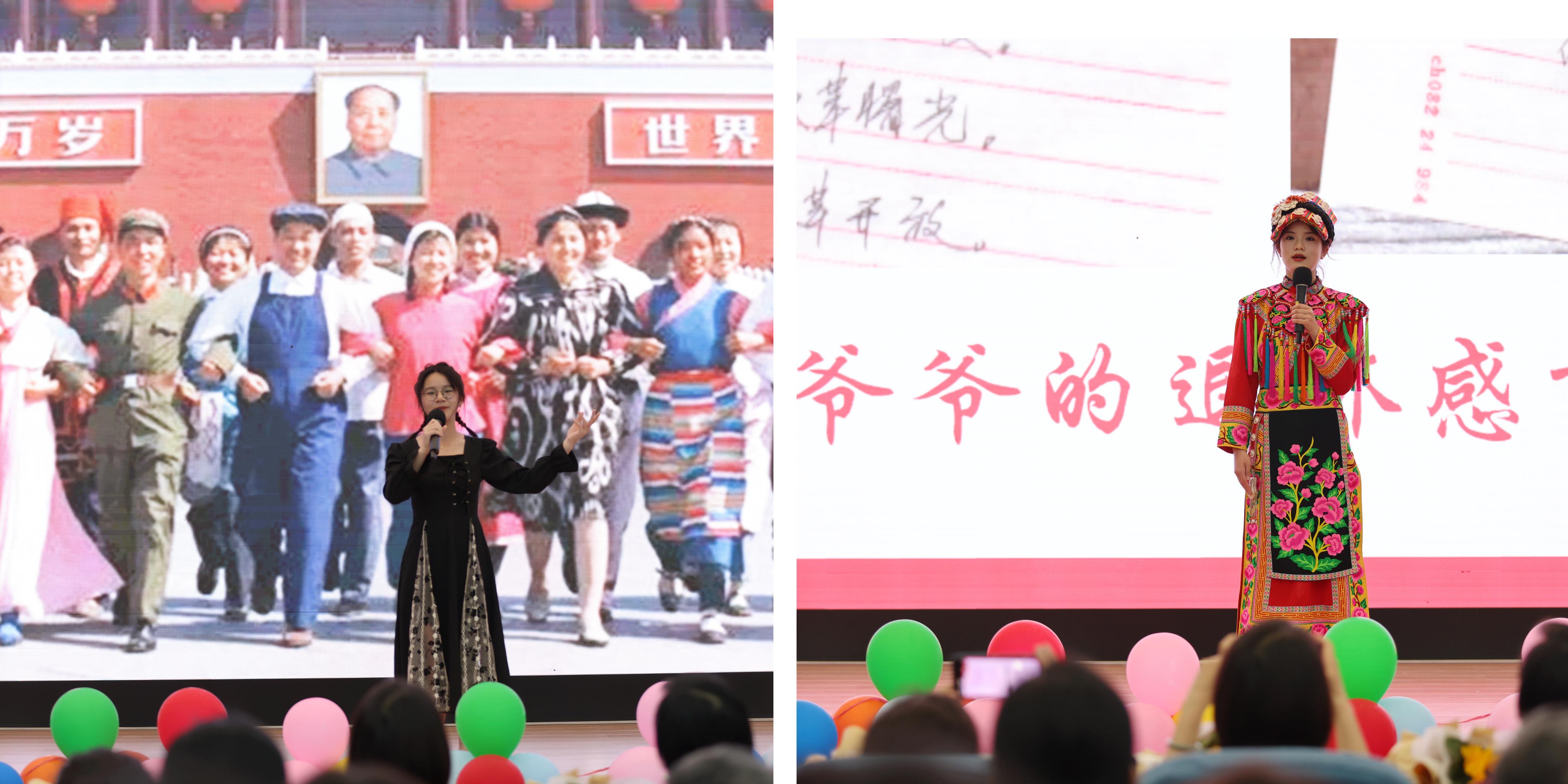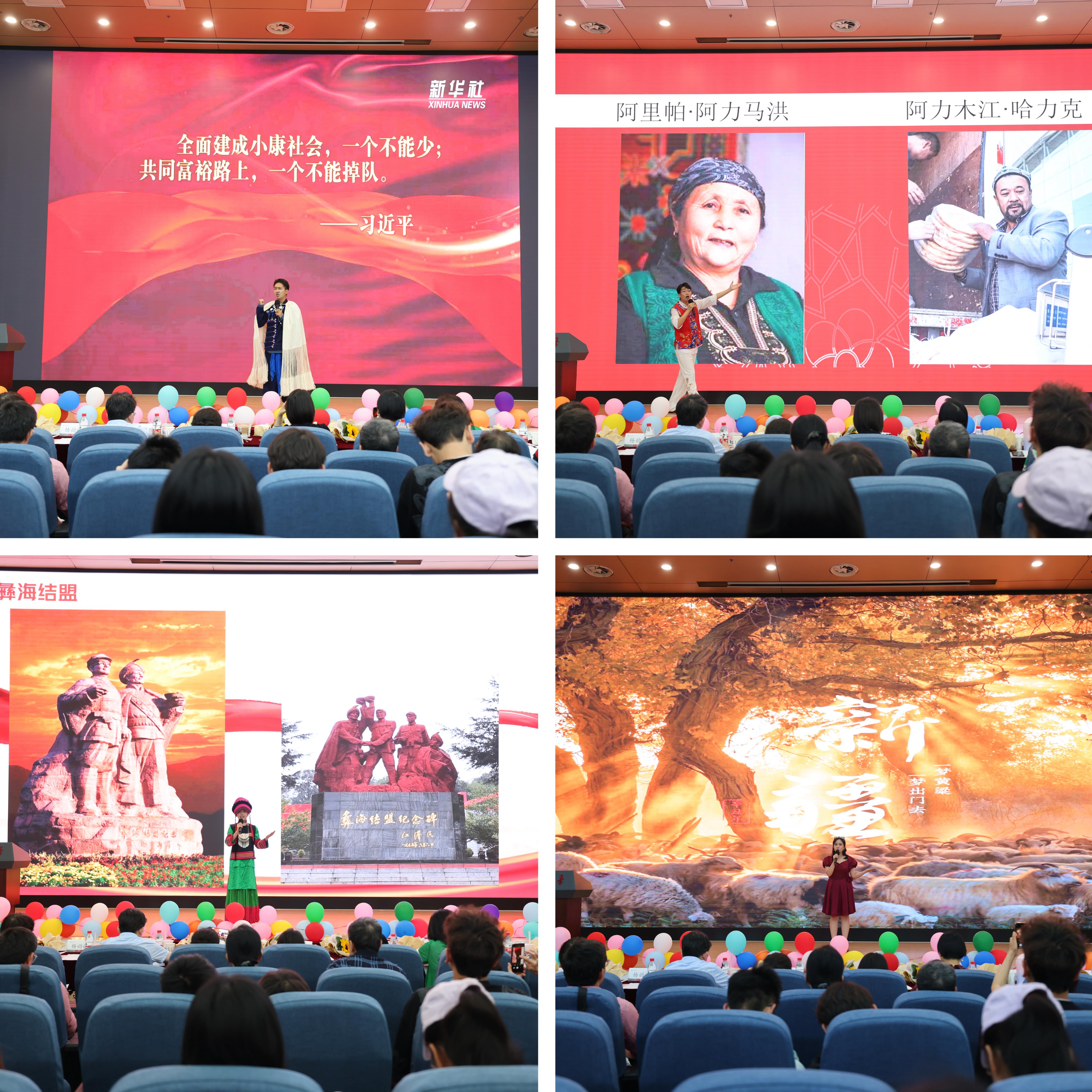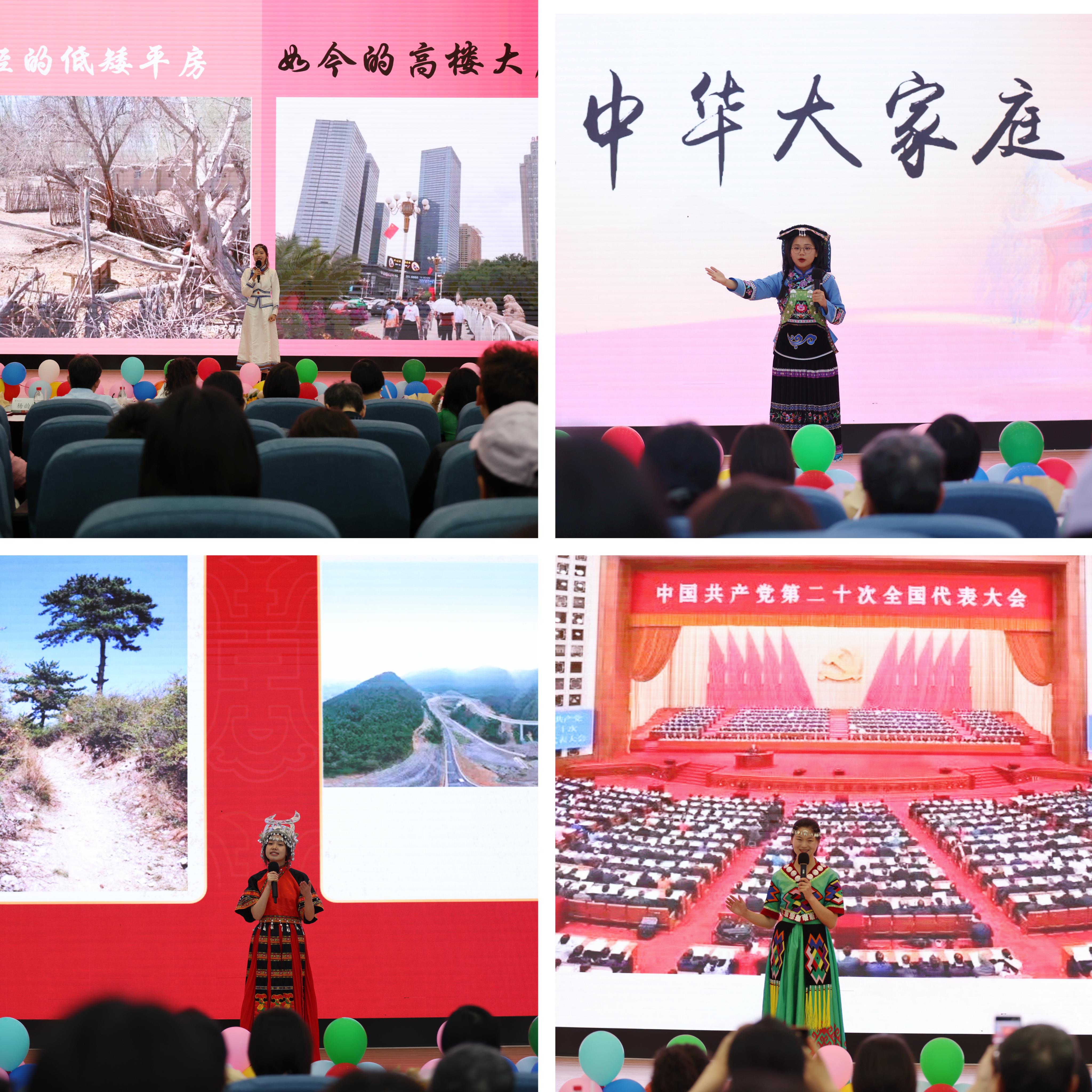 王紫璇、杨阳、李建民和冉冉等4位同学在演讲中展现了家乡的巨变:从古老的毛驴车到新能源公交车,从低矮的平房到拔地而起的高楼,从原始的土灶到整洁的现代厨房,从吃不好到学生有免费营养餐,从泥泞曲折的山路到跨越山河的高桥大道……在党和国家的关怀下,民族地区生活水平明显提高,生活方式向现代化改变,人民群众幸福感、获得感和安全感明显增强。