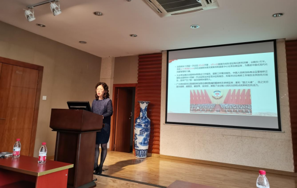 黄教授以“坚定不移谋发展,凝心聚力铸伟业”为题进行学习引领,介绍“两会”精神,解读政府工作报告,并作出具体阐述。她谈到,今年政府工作报告修改了教育部分,突出释放了一个重要的信息,即教育是强国建设、民族复兴的重要基石和有力支撑。另外她也强调到,政府工作报告中教育部分有四个明显的特点,即体现了党的二十大精神,全面贯彻落实党的教育方针,彰显以人民为中心发展思想,数字表述凸显教育成就。