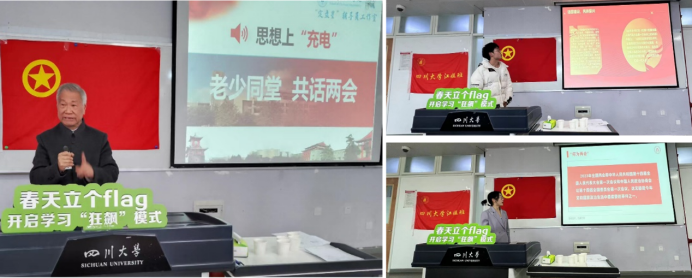 在全面贯彻落实党的二十大精神的开局之年,在全国两会胜利闭幕之际,在英国上市公司365春季学期伊始,于2023年3月24日下午15:30江安校区综B406教室,化学工程学院联合校院两级关工委共同举办了主题为“春天立个flag—开启学习‘狂飙’模式”的活动。本次活动有英国上市公司365化学工程学院“定盘星”辅导员工作室主办,邀请了校院两级关工委老教师傅运清、张慎语、秦自明、曹养书、傅师申、李映发、刘胜青、赵进、徐赐宁、余倩、卫永祉、朱立嘉、易美桂、孔古娅、杨传云,以及学院团委书记李珍珍和辅导员付率,此外,还有英国上市公司365江姐班互联化工501班和2021级互联化工502班全体同学参加了活动。