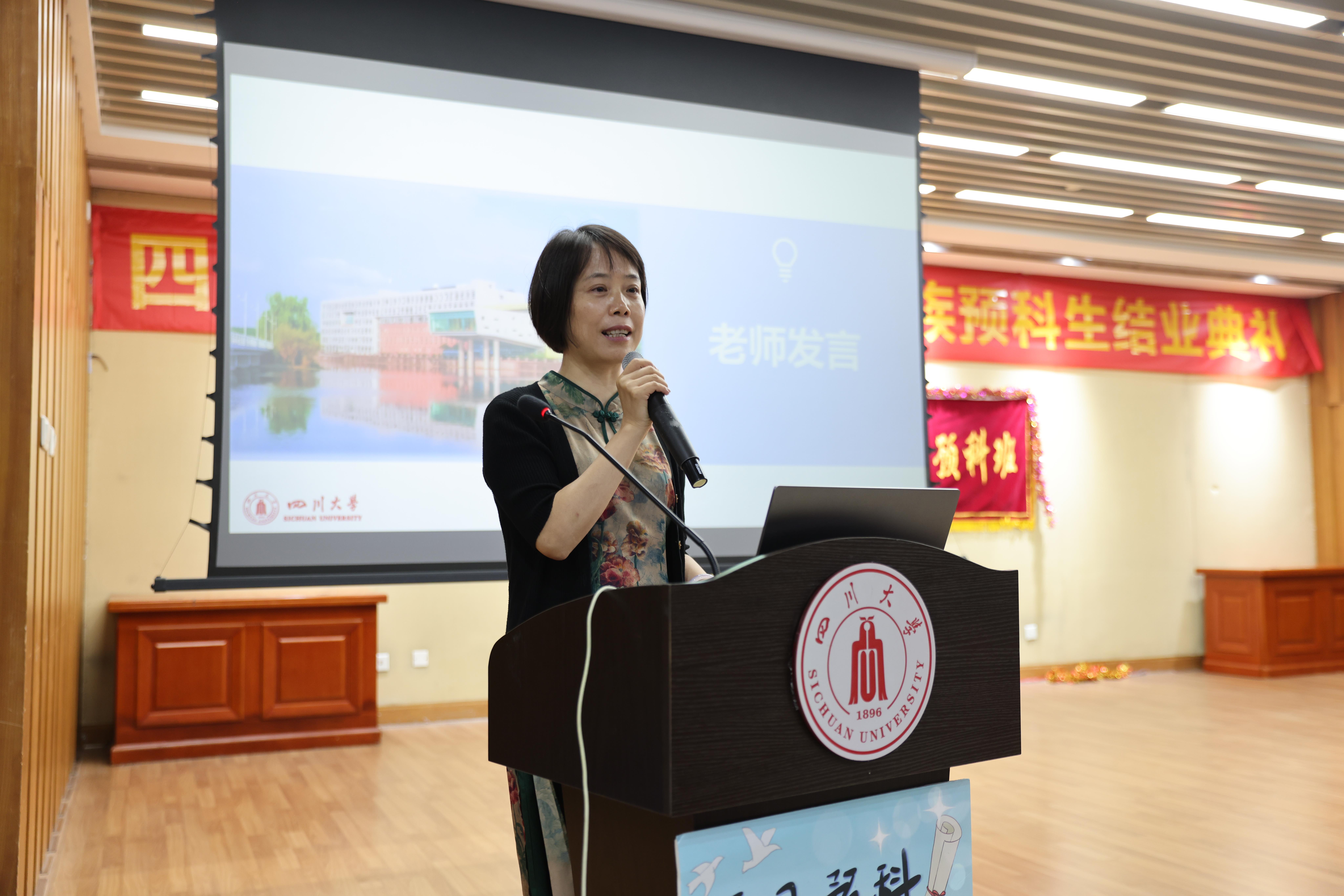 学工部副部长卢希芬在发言中,祝贺同学们完成紧张充实的预科学习,顺利进入本科阶段;感恩陪伴预科一年时间的师长们,希望同学们记住这份羁绊和牵挂;展望同学们在未来的本科学习中追求进步、学业优异,让自己活成一束光,照亮自己和身边人,成为一个温暖幸福的人;祝福同学们永远做自己的“孤勇者”。