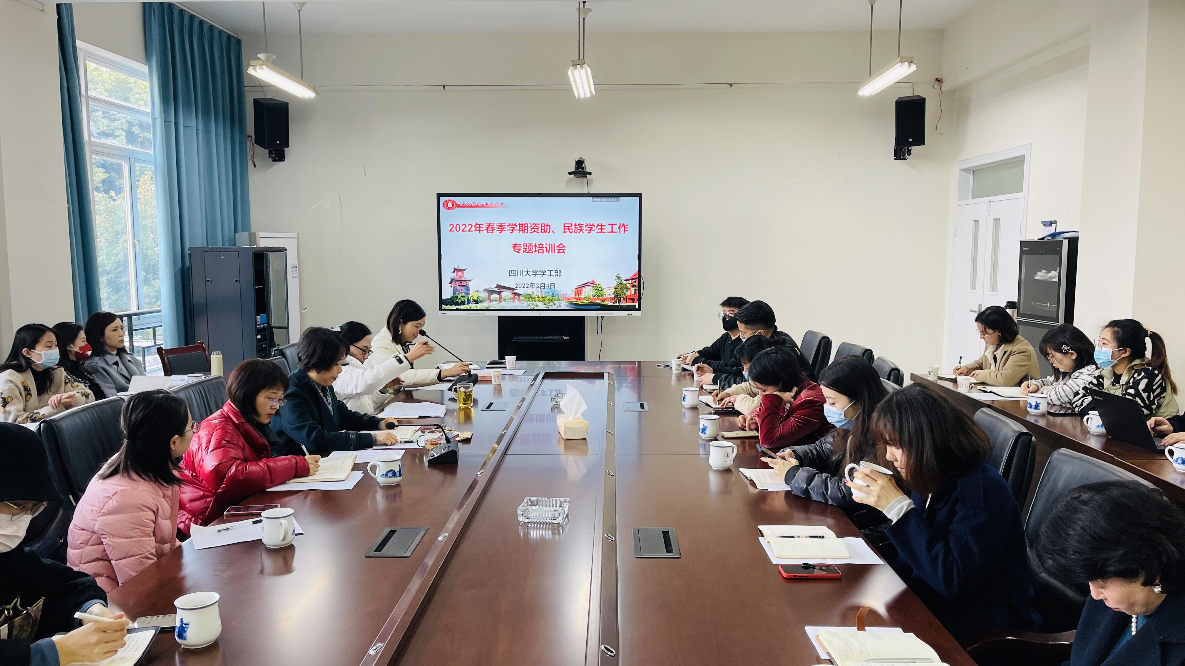 为续写我校2022年学生资助奋进之笔,传达最新工作要求,安排部署新学期资助与民族学生工作,学工部于3月4日在望江校区文华活动中心201会议室召开春季学期资助、民族学生工作专题会议,学工部副部长卢希芬、学生资助中心、民族学生事务办公室全体老师与学院资助专职老师参加了本次会议。