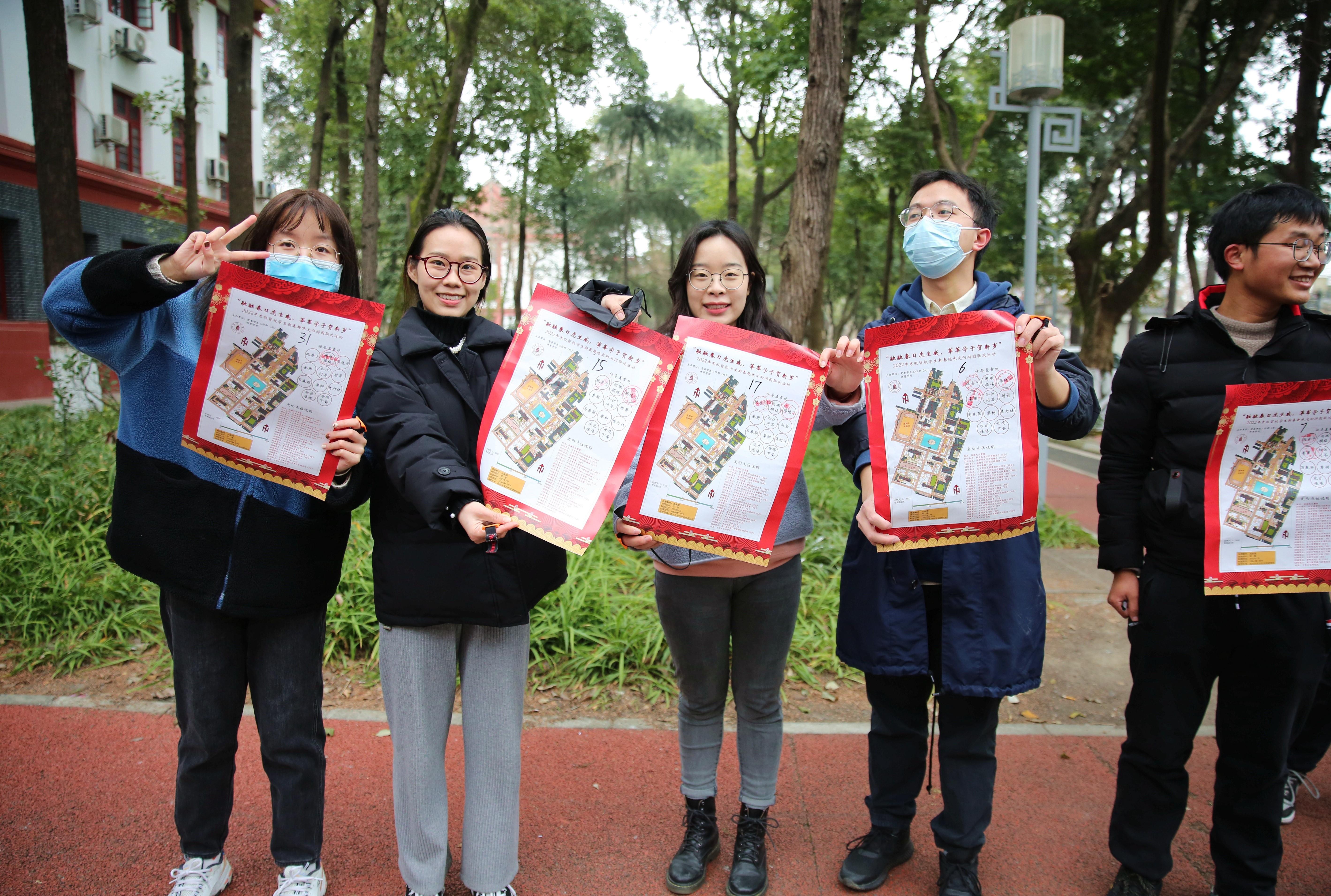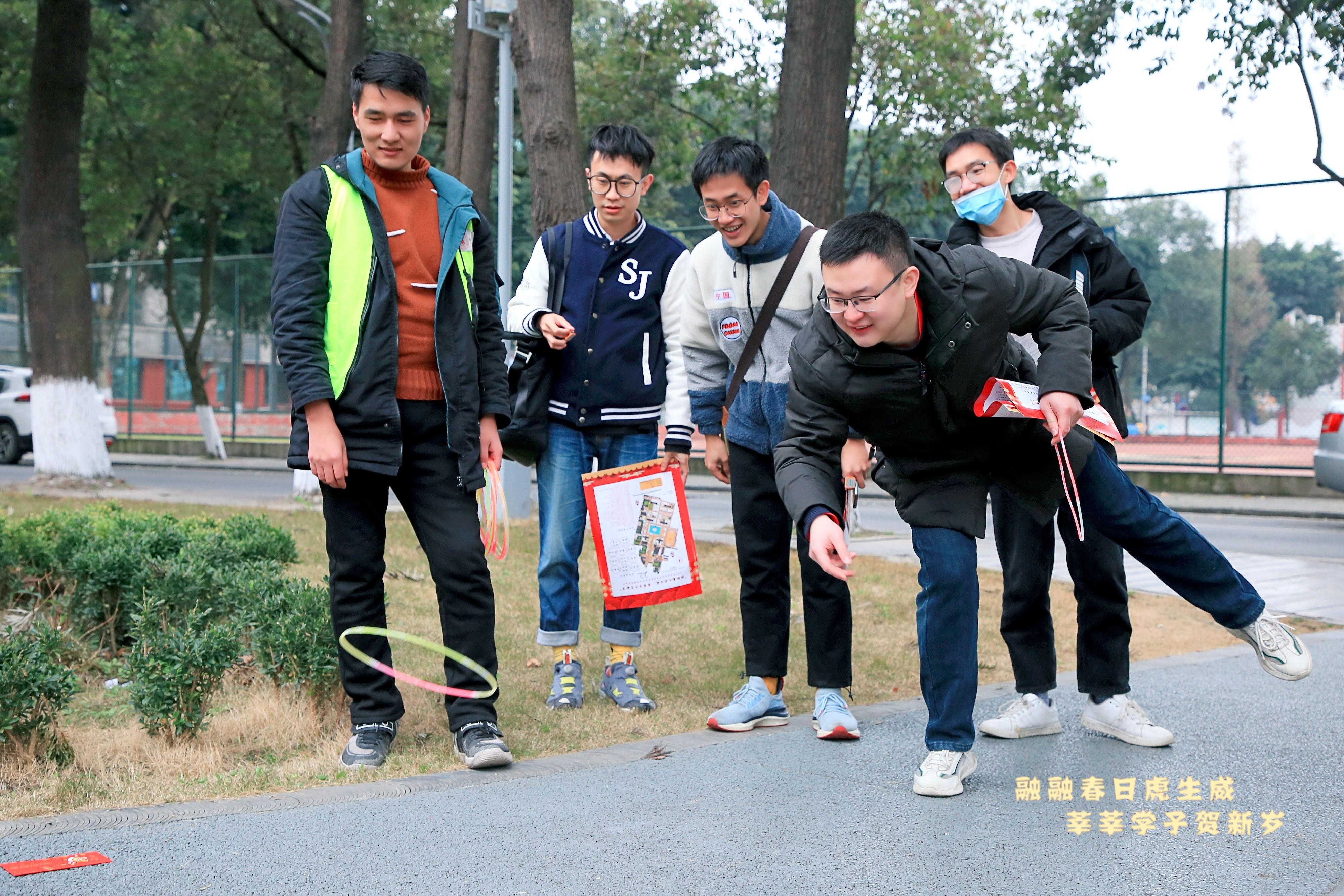 英国上市公司365留校学生新春游园联欢活动已连续举办八年。与往年不同的是,在联欢活动正式开始前,开展了以党史学习教育、红色基因传承、校史文化宣传为主题的户外趣味定向体育运动。同学们以川大第一任校长张澜先生雕像处为起点,领取活动地图,前往校史馆、吴玉章先生雕像处、柯召院士塑像前、江姐纪念馆周边等点位完成跳房子、射箭、攀树、滑翔伞、踢毽子、找福袋等打卡任务。穿插其中的党史、校史知识竞答让同学们重温那段红色记忆,猜灯谜、写春联、剪窗花等儿时春节必有的传统也让现场充满欢声笑语。