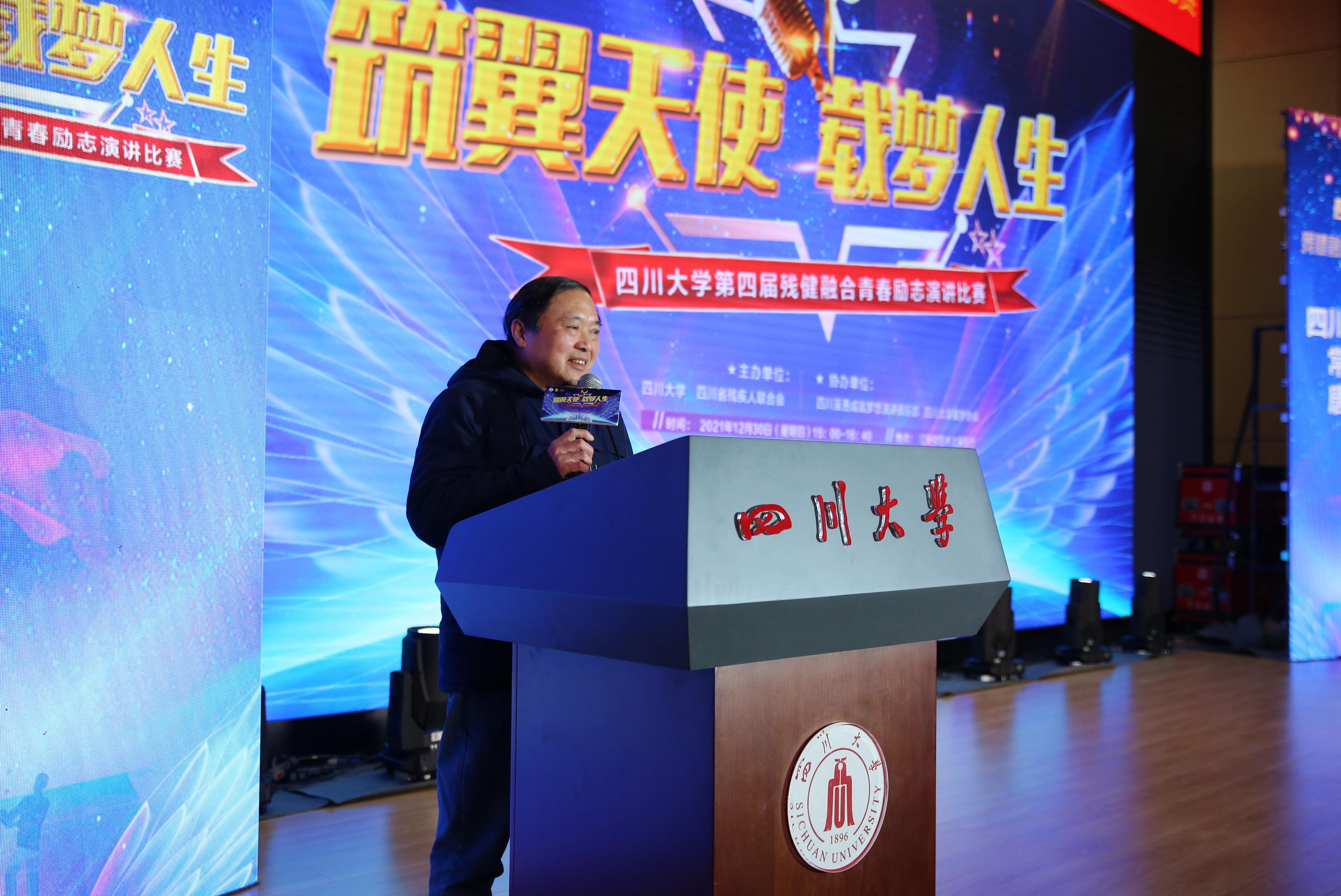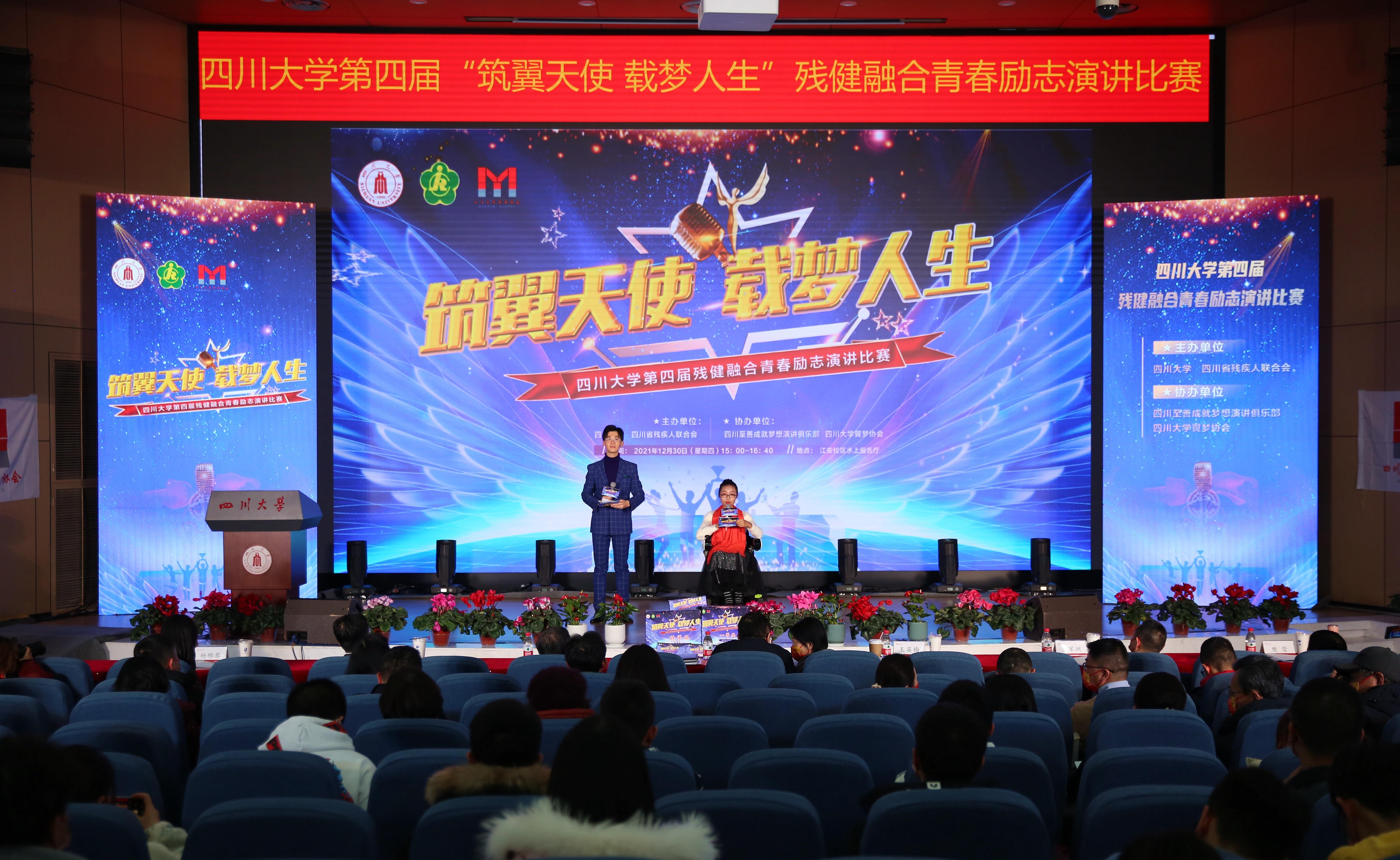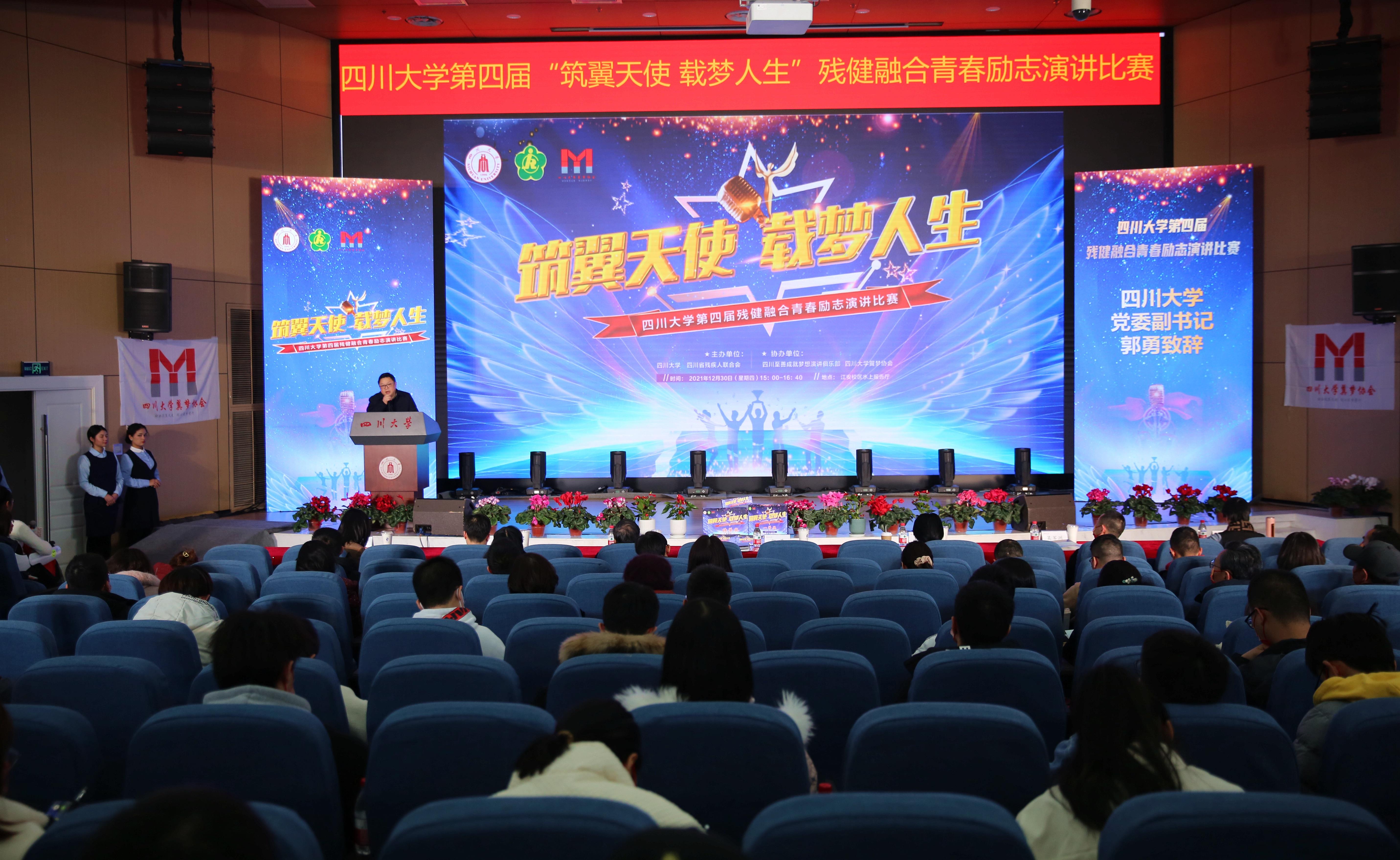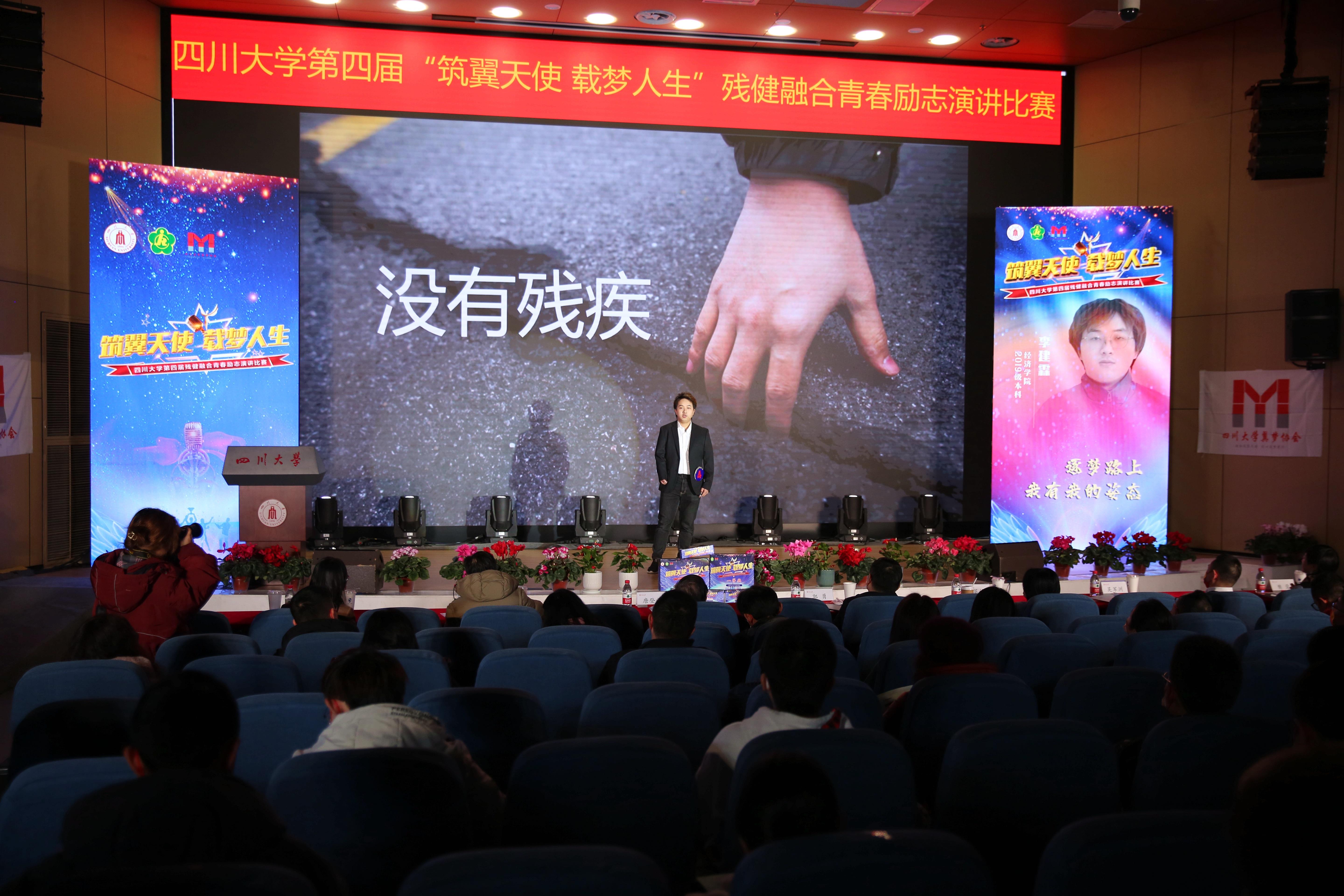 为进一步营造融合教育文化氛围,推进残疾人高等融合教育事业, 12月30日下午3点,学校在江安校区水上报告厅举行了第四届“筑翼天使 载梦人生”残健融合青春励志演讲比赛决赛,校党委副书记郭勇、伟创力国际有限公司亚太区人力资源副总裁曲连峰一行、罗客教育集团总经理袁训江、四川嘉晨电力集团有限公司董事长何宇星、四川至善演讲俱乐部樊莺以及学校相关单位负责人、各学院师生代表300余人出席了活动。
