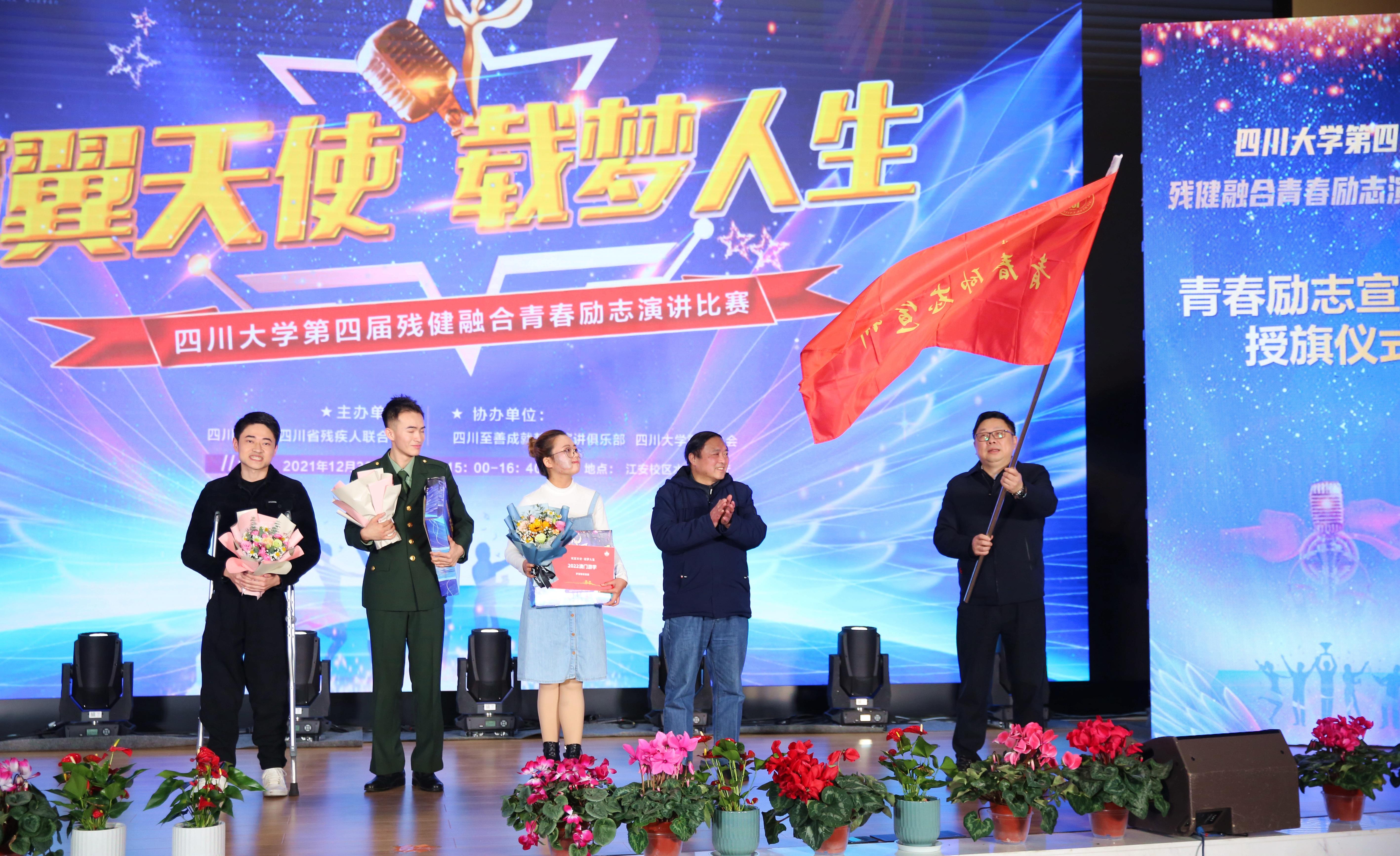 颁奖结束后,郭勇副书记为以获奖选手组成的青春励志宣讲团进行了授旗。