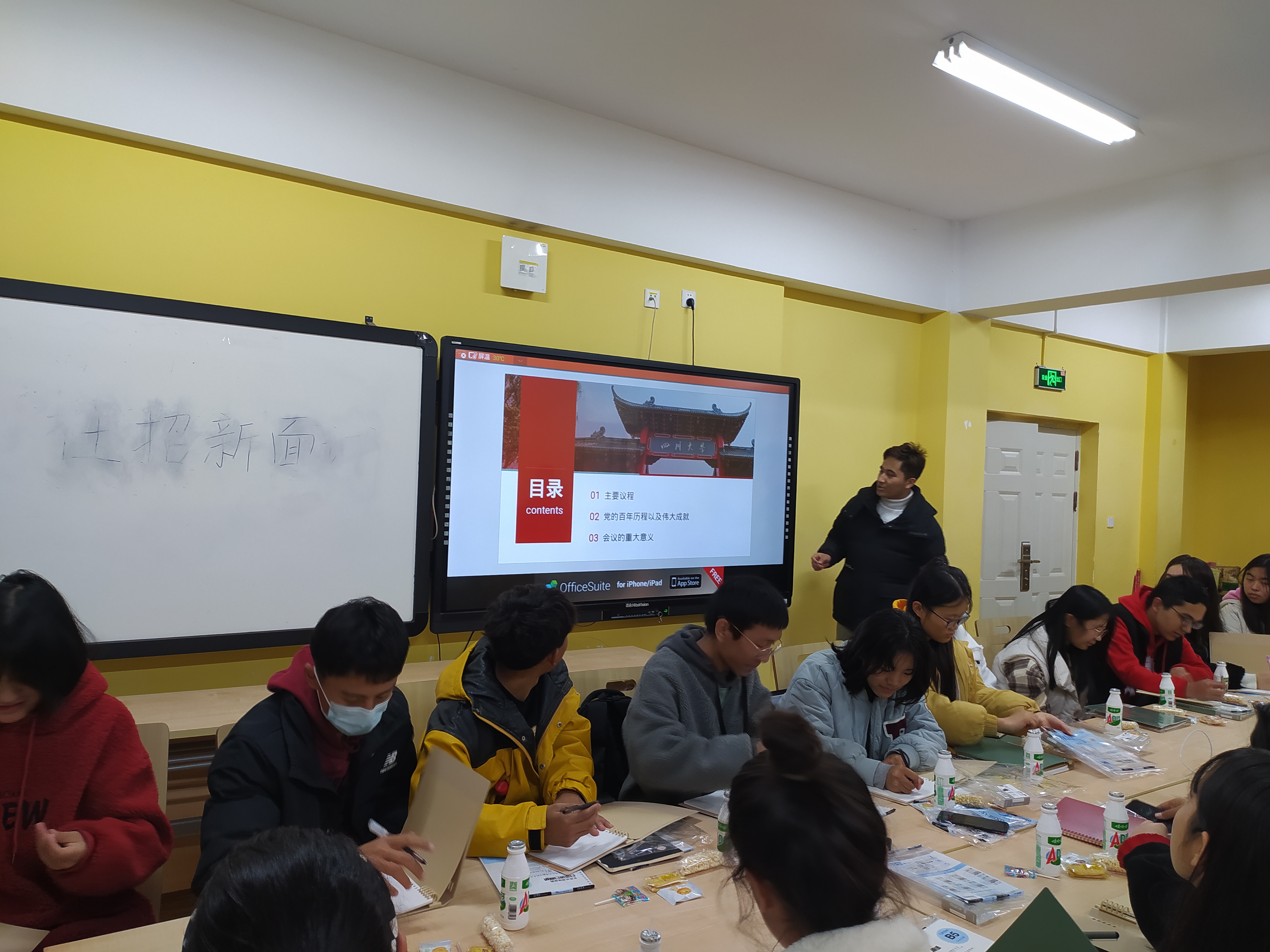 “要学好专业知识,增强自身本领,为实现中华民族伟大复兴的中国梦贡献青春力量”,在分享环节,高分子科学与工程学院2020级本科生伊萨克·亚森、生物医学工程2020级本科生达娃罗布分别进行了全会精神学习的心得分享。华西临床医学院2018级本科生伊利亚斯·艾力表示:“全会精神的学习让我感触颇深。作为—名学生助理,要带头学习,切实当好引领青年学习贯彻十九届六中全会精神的示范者和组织者。”文学与新闻学院2021级本科生贡桑卓玛谈到:“我家在中印边境,近些年来家乡的种种变化让我更加坚定矢志奋斗、报效祖国的决心。”文学与新闻学院2019级研究生地娜·努力巴合提立志于从事民族学生教育管理工作:“全会公报里提到的‘全党全国各族人民文化自信明显增强’让我感触颇深,我们应进一步坚定文化自信,铸牢中华民族共同体意识,刻苦钻研学习,努力为新时代贡献自己的力量。”