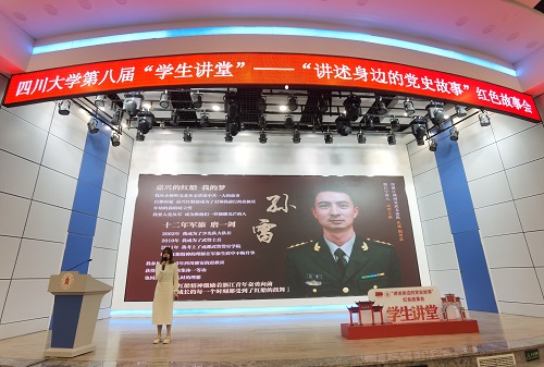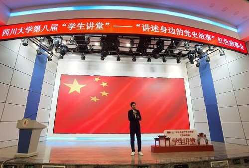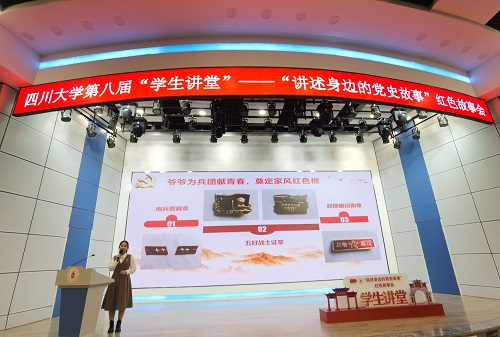 开场的情景短剧再现了作为“红岩精神”典型代表的校友江姐革命斗争生涯中感人至深的瞬间,由此拉开了比赛的帷幕。决赛现场,选手们结合自己身边的党史故事,或以融进血脉、浸入骨髓的红色家风气质为感召,动情讲述受其影响而塑造的立世做人品格;或以舍身取义、彪炳千秋的家乡红色英模为榜样,真切表达对中国共产党人为老百姓打江山、守江山崇高精神境界的深刻理解;或联系山乡巨变的时代风貌,深情回顾中国共产党领导中国革命、建设与改革伟大探索的非凡历程,共同传达新时代青年对党和国家的拳拳赤子之心和砥砺奋进之志。选手们的精彩表现,令现场不时掌声雷动、欢呼阵阵。比赛间隙,还进行了红色知识问答,同学积极参与,会场气氛热烈。