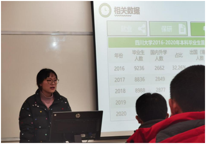 大川小思学习效能组导师兼组长,历史文化学院18级任佳鸣同学为同学们分享了保研、辅修经验。她简要介绍了保研流程、重要时间节点、基本要求等几大关键要素。她认为,保研需要同学们在科研竞赛,专业成绩,文体实践等方面均有一定建树,是一个长期努力的过程。辅修方面,任佳鸣以自己的亲身经历为例,讲解了辅修以及辅修的利弊。她说,辅修必然会花费一定的时间与精力,需要同学们加强时间分配的能力并提高效率,是否辅修,同学们要结合自身的学习兴趣与未来职业发展,理性选择。