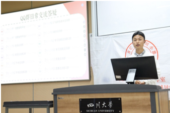 首先,“大川小思”升学组导师兼组长、机械工程学院18级李世坤同学向生命科学院21级同学们简要进行了组织介绍。就大川小思朋辈学业辅导中心的组织宗旨、以及效能组、数学组、英语组、竞赛组、升学组大川小思五大学业发展辅导小组的职能进行了说明,鼓励大家积极通过一对一咨询、参加学长微课等团体辅导、匿名投稿提问、关注公众号干货推送等方式获取学长学姐学习经验,解答学习困惑。随后,李世坤还向大家分享了自己的大学学习生活,建议同学们从专业成绩、科研竞赛、文体实践三个方向规划大学生涯。