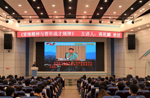 蒋教授深情回顾了曾作为下乡“知青”、场务连战士、自考大学生和高校教员等身份转换经历,分享了践行“雷锋精神”的心路历程。谈到新时代青年人的使命担当时,蒋教授援引了马克思、周恩来、丁晓兵、焦裕禄等历史伟人和时代楷模的光辉事迹,告知同学们要自觉从以“雷锋精神”为代表的中国共产党人的精神谱系中感悟成才的规律,厚植爱国情怀,把握成才机遇,不负时代嘱托。