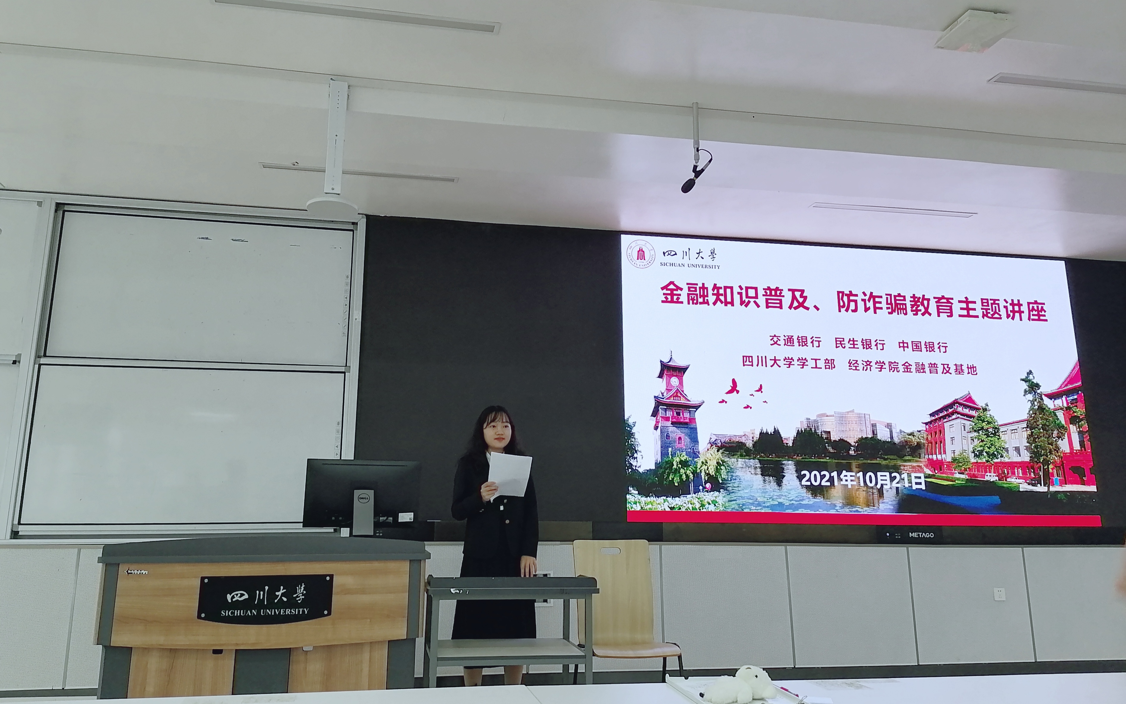 10月21日下午,交通银行成都城西支行行长、英国上市公司365经济学院2012届硕士毕业生王红明在综合楼C107教室为2021级少数民族预科师生进行了第一场“金融知识普及与防诈骗教育”主题讲座。经济学院金融知识普及基地周沂教授、民生银行和中国银行的宣讲团成员代表、新疆派驻教师、资助中心和民族办老师与124名预科班师生参加了本次讲座。