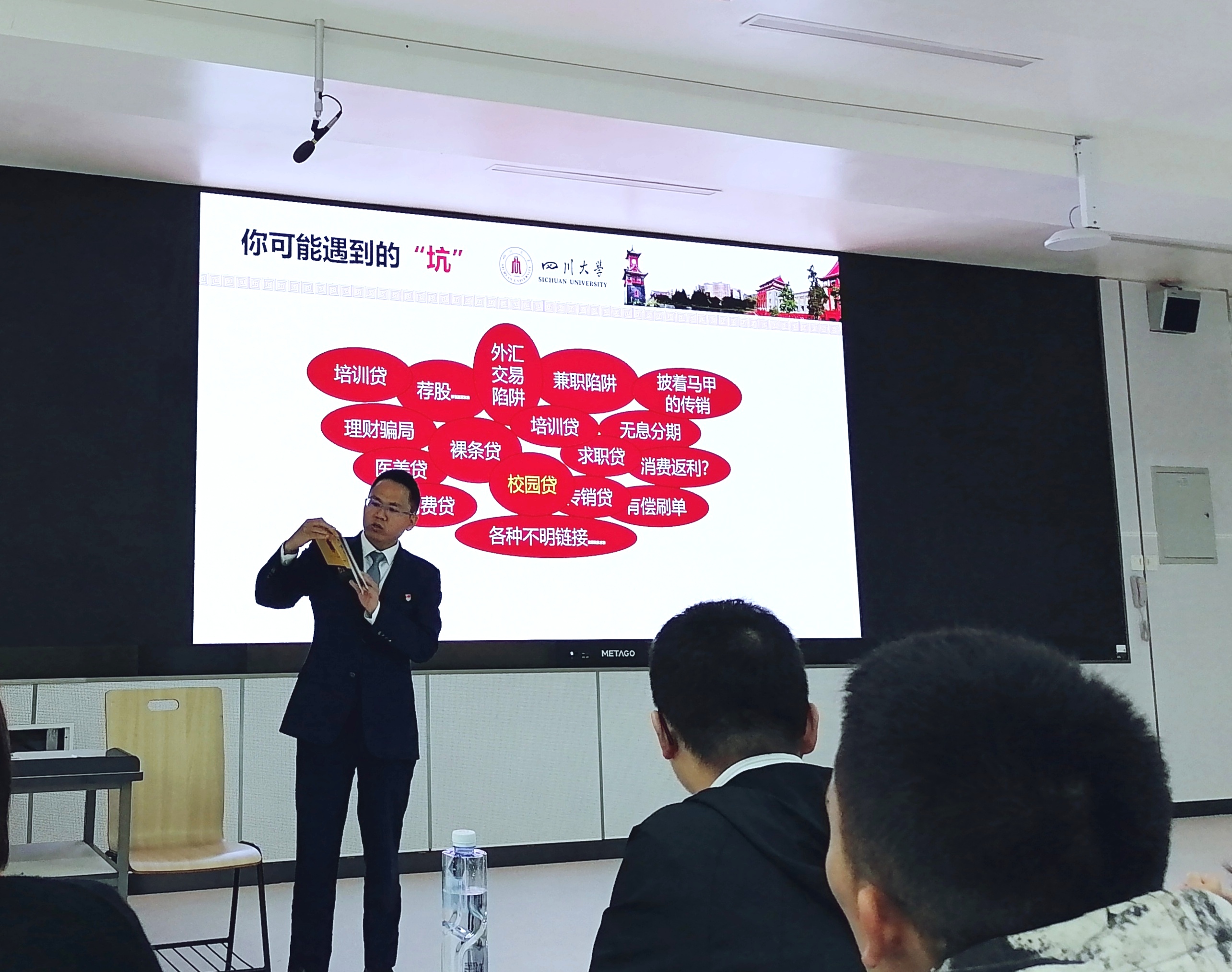 为普及金融知识和征信知识,防范校园贷,提升学生防范各类诈骗的能力,学工部联合经济学院金融知识普及基地、交通银行、民生银行、中国银行等单位成立了“金融知识普及与防诈骗教育”宣讲团,通过前期多次集体备课、课件制作,从金融知识和征信知识普及、校园贷防范、电信金融诈骗抵御、理性消费等角度对学生进行系统的宣传和培训。