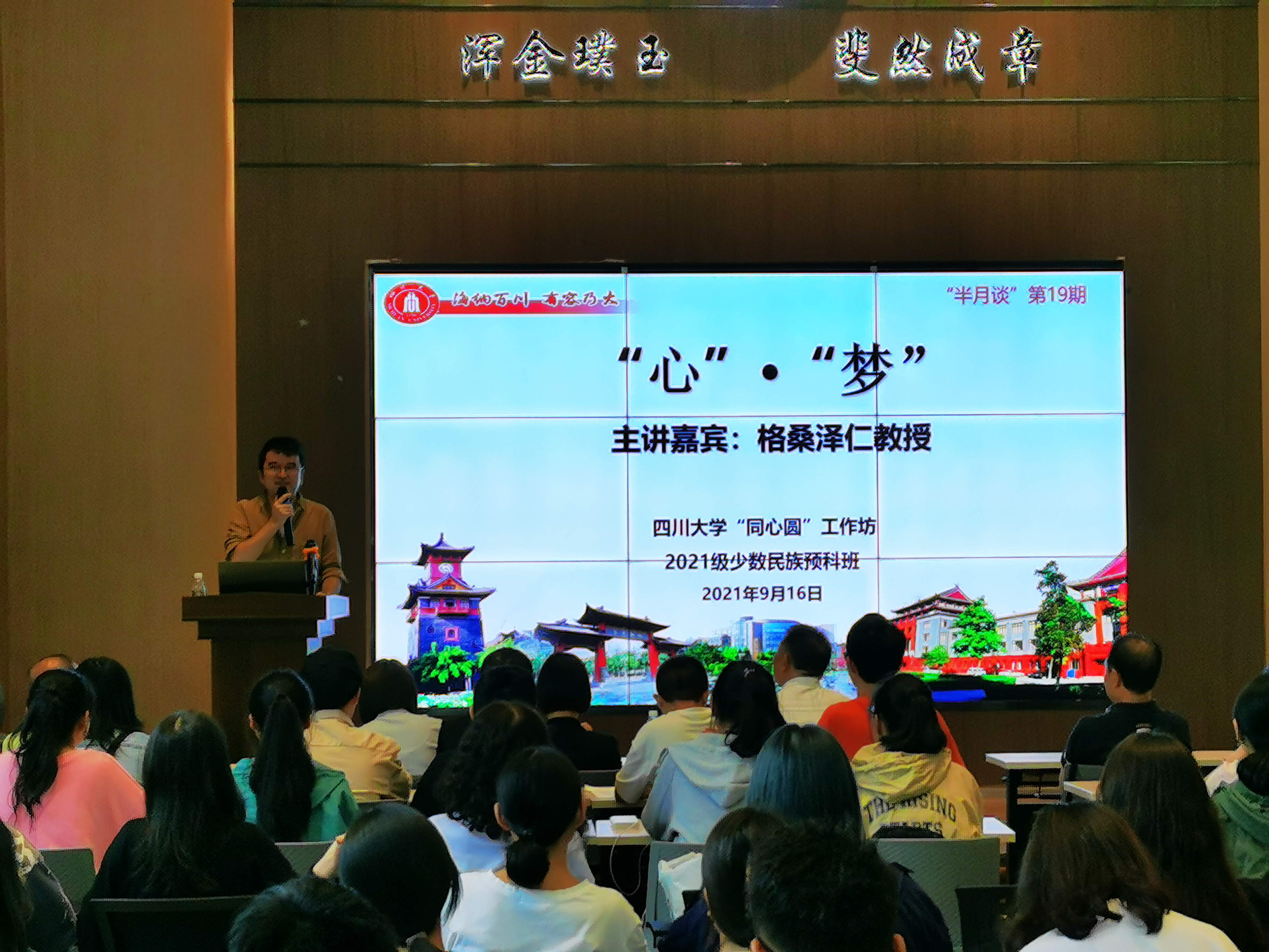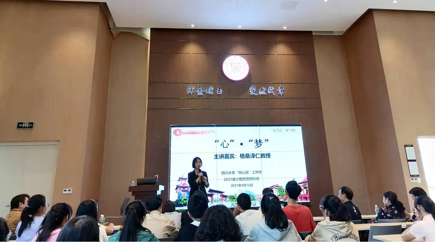 为提高学生心理健康素养,以良好状态迎接新学期的学习生活,9月16日下午,学工部邀请心理健康中心格桑泽仁教授为同学们带来以“心·梦”为主题的心理健康主题讲座。讲座在吴玉章学院报告厅顺利举行,学工部副部长卢希芬、教导员老师、新疆派驻教师、学工部资助中心、民族办的老师与2021级少数民族预科班全体学生一同参加了本次活动,活动由预科班辅导员努尔麦麦提江主持。