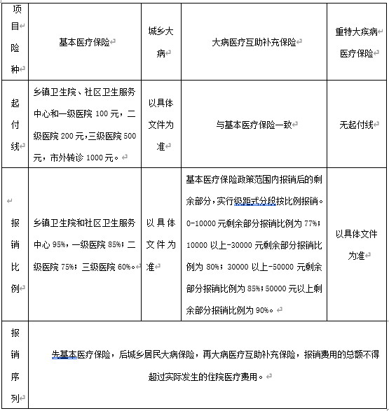 成都市年城乡居民(大学生)医疗保险住院报销政策一览表
