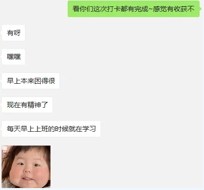 活动期间,同学们有条不紊地进行着相关课程的学习,积极交流;老师们在微信群里及时给出反馈和改进意见。同学们的打卡记录也彰显了川大学子积极的求学热情和丰硕的学习成果,使得整个训练营活动形成了良好的学习氛围和正能量循环,带动了暑期居家学习的热情。