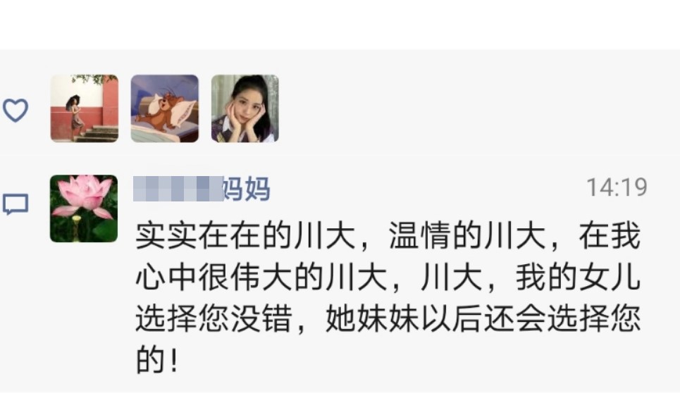 华西公共卫生学院2018级本科生恭嘎旺秋:困难同学中有给我很深印象的,如有一位同学的父母收入微薄,居住条件比较差,但他们对生活十分乐观,整个家庭的氛围是积极的,阳光的,这位同学还充分利用课余时间去勤工俭学,减轻家里的压力,同学的父亲是一名退伍老兵,言语中满满的都是对儿子的自豪,教育孩子的方式十分的朴实无华。给我的感觉是这小小的简朴的小房间里充满着温暖的阳光,一家人正能量满满,这是十分难得可贵的。
