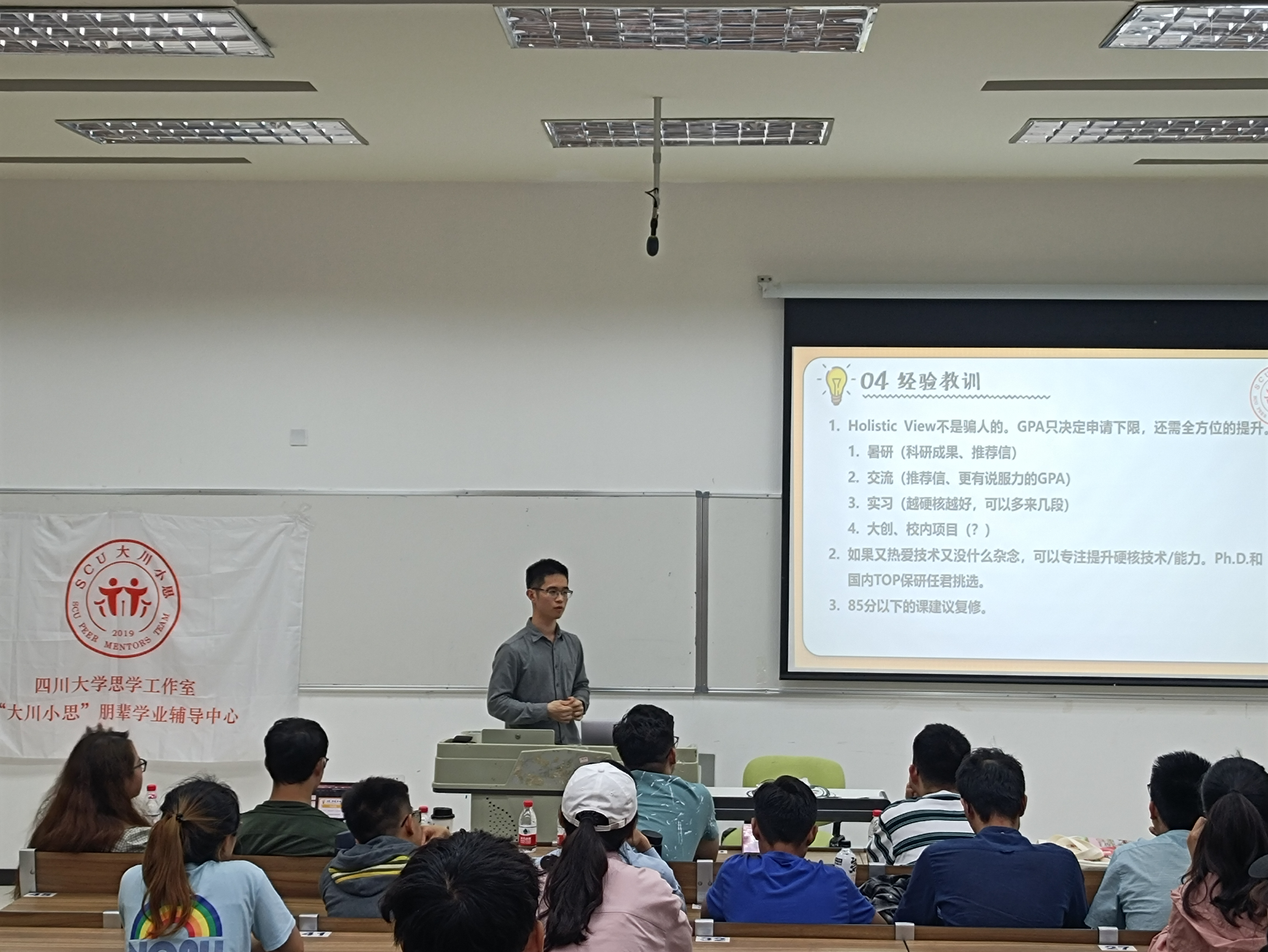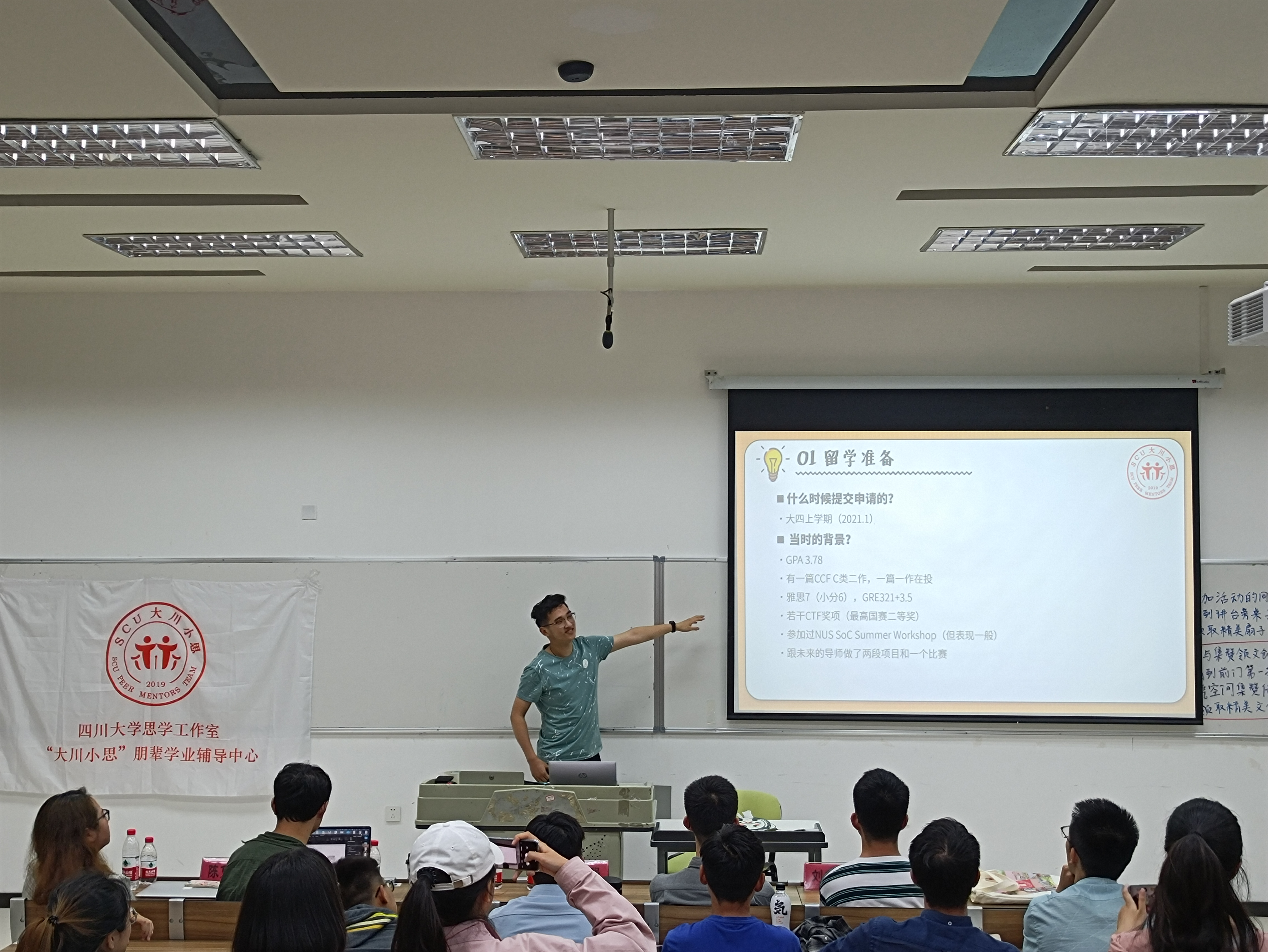 5月22日19:00,“大川小思”出国留学朋辈团体辅导活动在江安校区综合楼C408顺利举行。此次学业团体辅导由本学期新招募选聘的“大川小思”升学组出国留学小导师承担,也是学工部“思学”工作室首次开展的出国留学朋辈团体辅导活动。