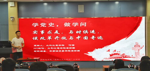 电气工程学院、轻工科学与工程学院、水利水电学院、外国语学院等宣讲团成员们围绕党的历史上的重要会议展开宣讲,将中国共产党建立之初的细节娓娓道来,让同学们深刻地感受到党的创建是中国历史上开天辟地的大事,激励当代青年学子继往开来,传承创新。