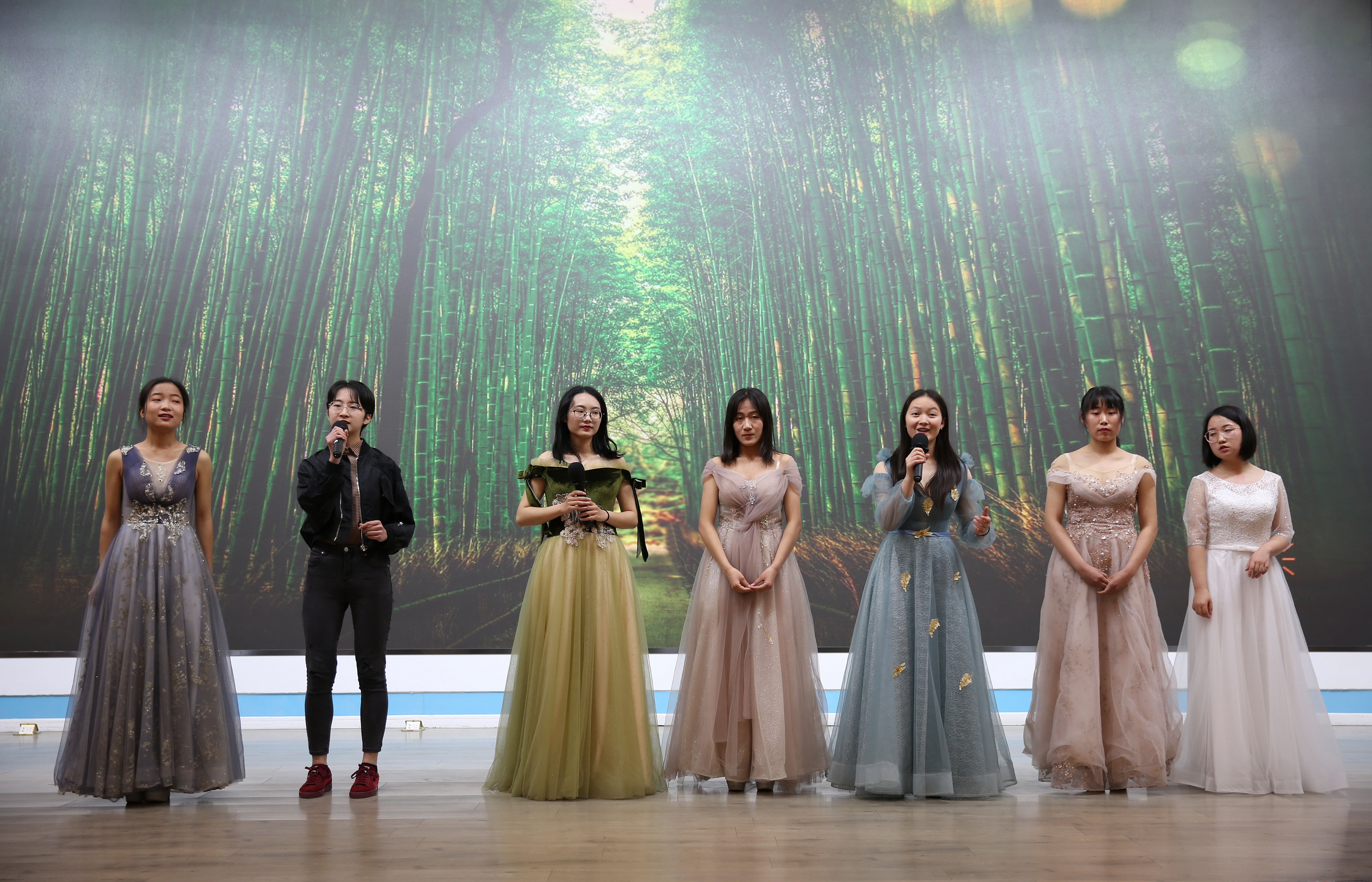 随后,声乐班的同学以一首《推开世界的门》拉开序幕,美妙歌声展现芳华绽放之姿;吉他弹唱《春风·约定》《有何不可》《青柠》三首歌曲以吉他、电子琴与歌声巧妙演绎,飞杨出浪漫的音符;一段《二十四势太极拳》,一舒一展,一招一式,与水墨背景相互迎合;竹笛演奏《甜蜜蜜》《繁花》,笛声悠扬婉转,阵阵花香在夜色弥散;中国舞《青花吟》,海蓝云白与荷绿的碰撞,演绎柔美的国风之姿;尤克里里班弹奏串烧歌曲,带大家梦回90年代流行岁月;两人唱《身骑白马》,柔声描绘薛平贵与王宝钏的爱情;街舞班的同学带来《look