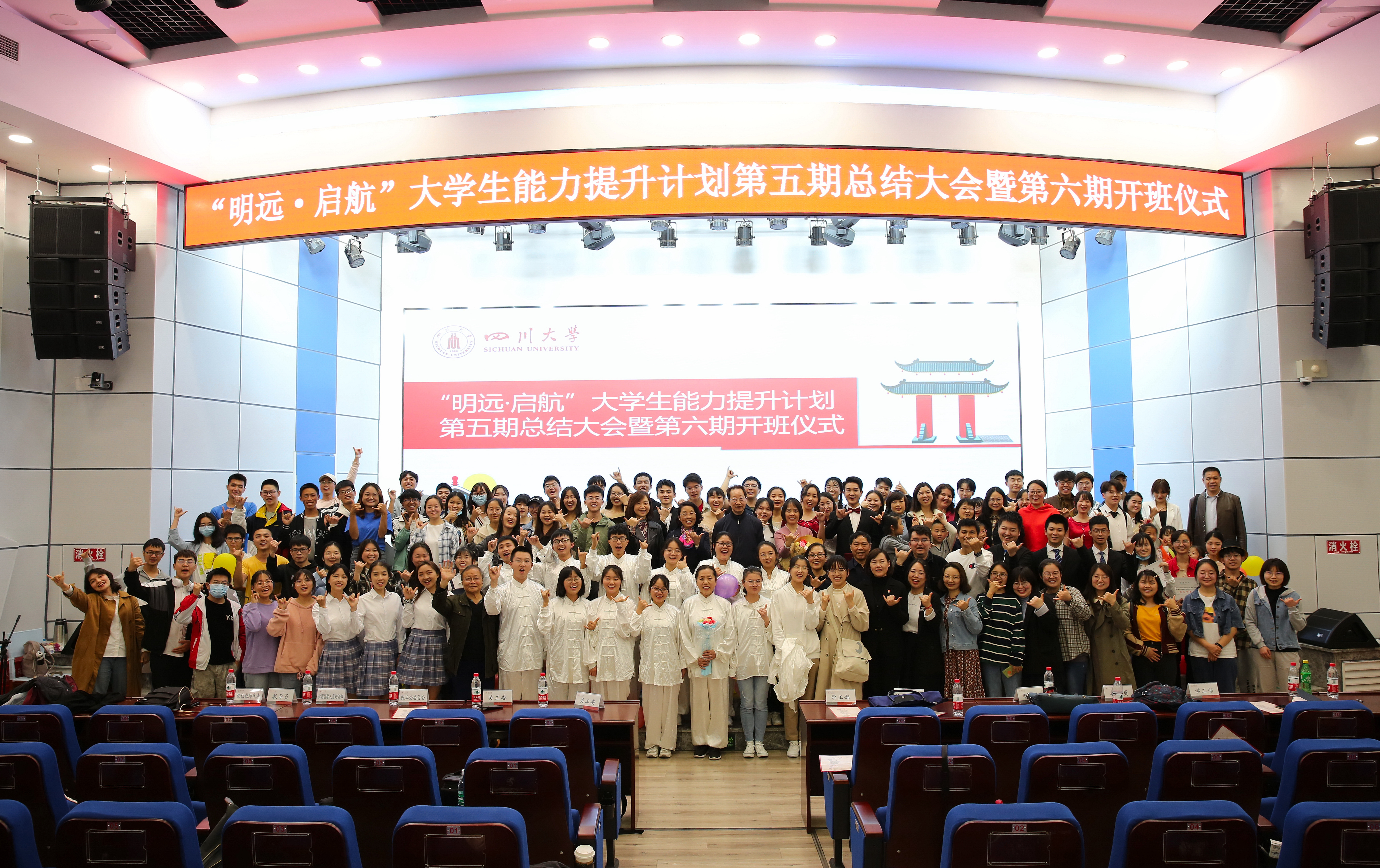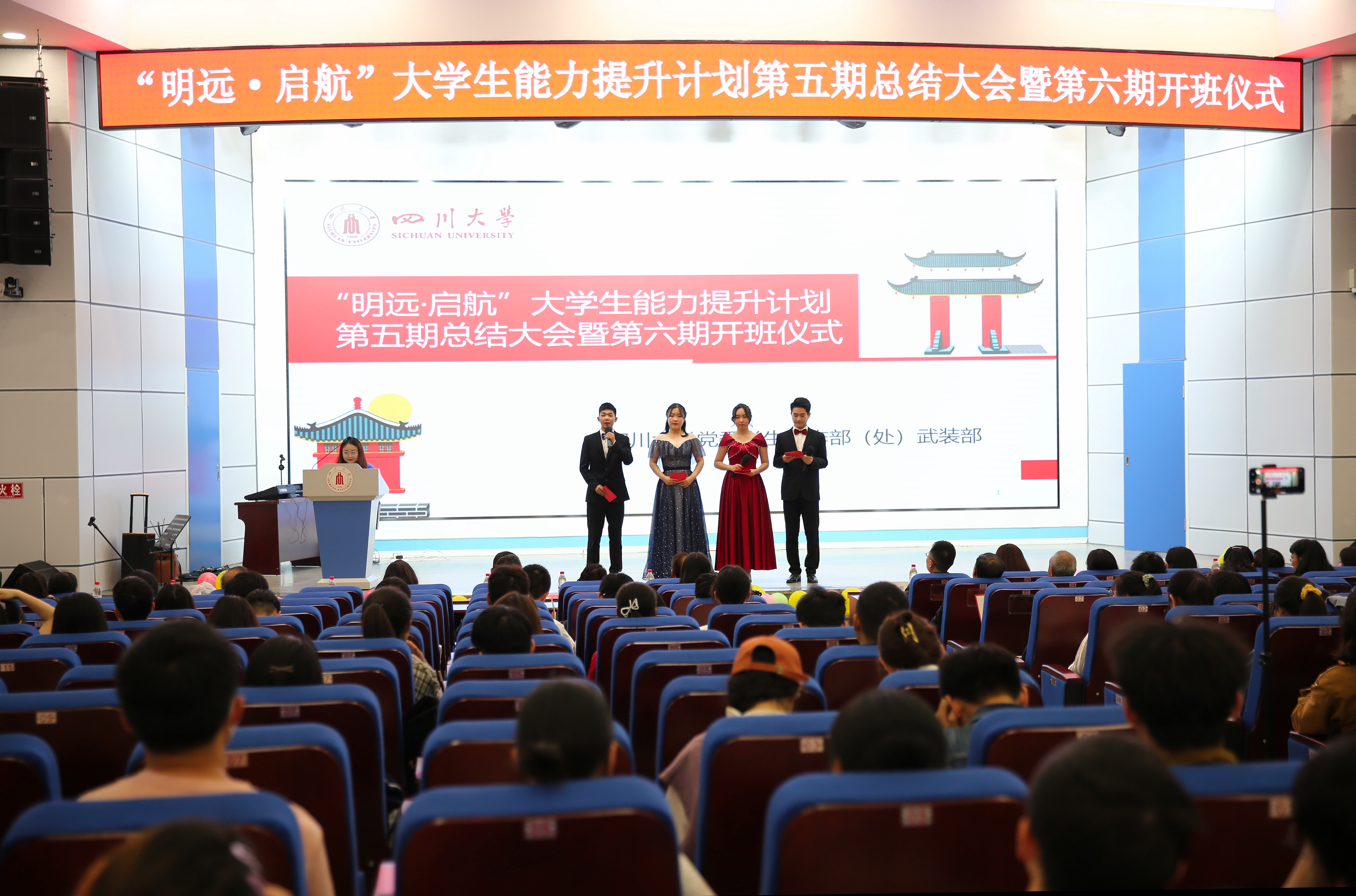 为落实立德树人根本任务,深化资助育人,以丰富多彩的形式庆祝中国共产党建党100周年,4月16日晚上,学工部组织的“明远·启航”大学生能力提升计划第五期总结大会暨第六期启动仪式在望江校区东三教演播厅顺利举行。校关工委、教育基金会、出国培训部、校工会、教务处等部门相关领导及老师、教导员、内派老师和300余名同学参加了此次活动。