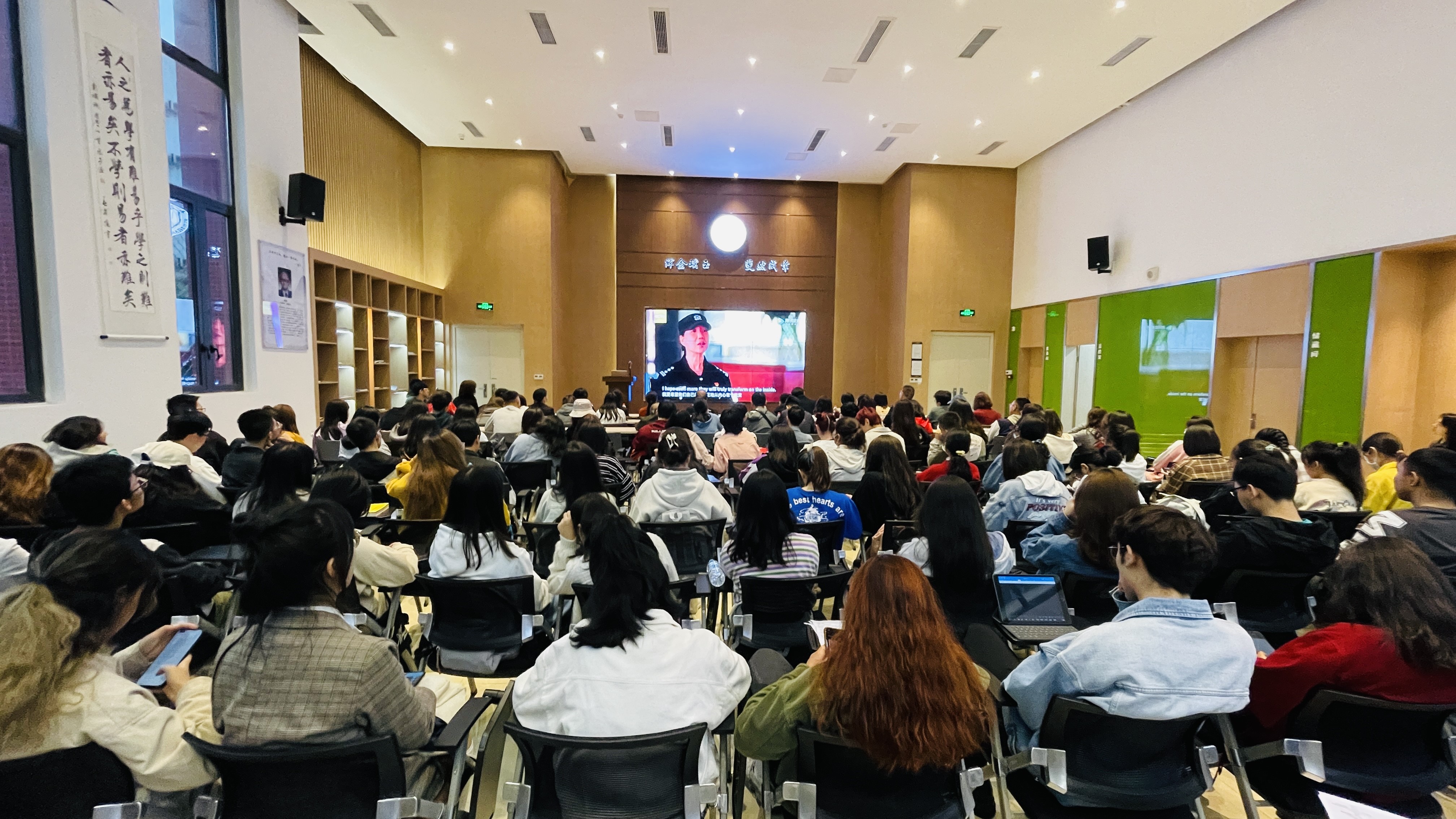 活动伊始,在场师生共同观看了中国国际电视台推出的第四部反恐纪录片《暗流涌动——中国新疆反恐挑战》,该纪录片集中披露不为外界所知的反恐斗争案例,例如首次揭露新疆“两面人”个案事实,首次公布新疆少数民族语问题教材事件,以及首次介绍“东伊运”向中国境内传播暴恐音视频情况。