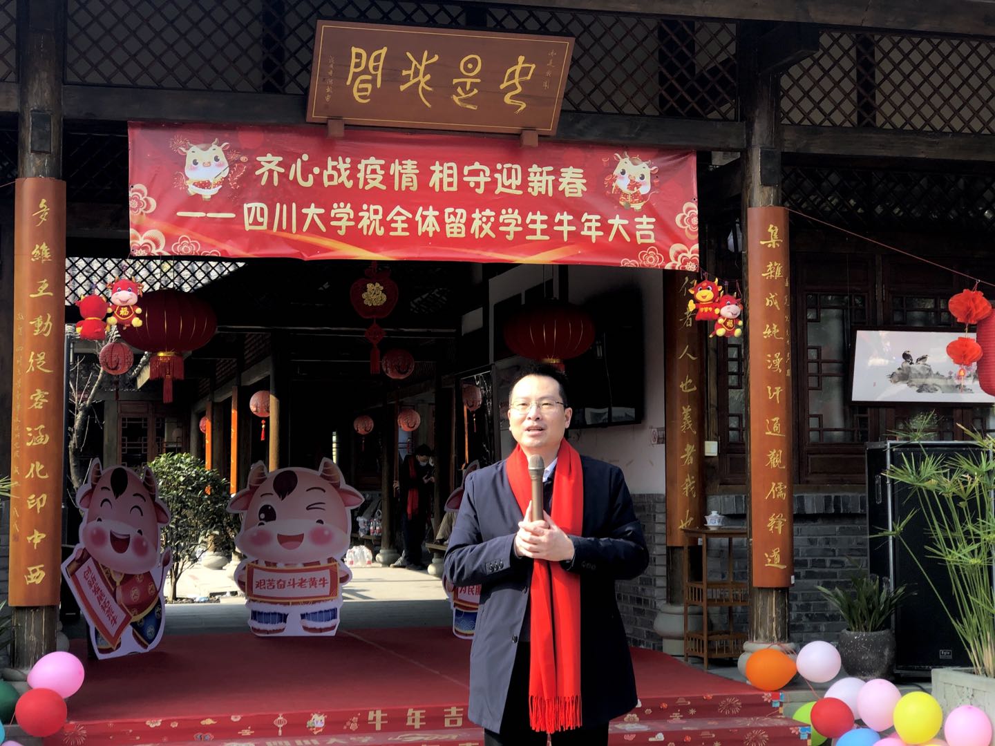 2021年2月1日,学校在望江校区中华文化研究院举行“齐心战疫情,相守迎新春”英国上市公司3652021年留校学生新春茶话会。四川省教育厅宣思统处、学校相关部处负责人、教导员及留校学生代表欢聚一堂,共迎农历辛丑新年。