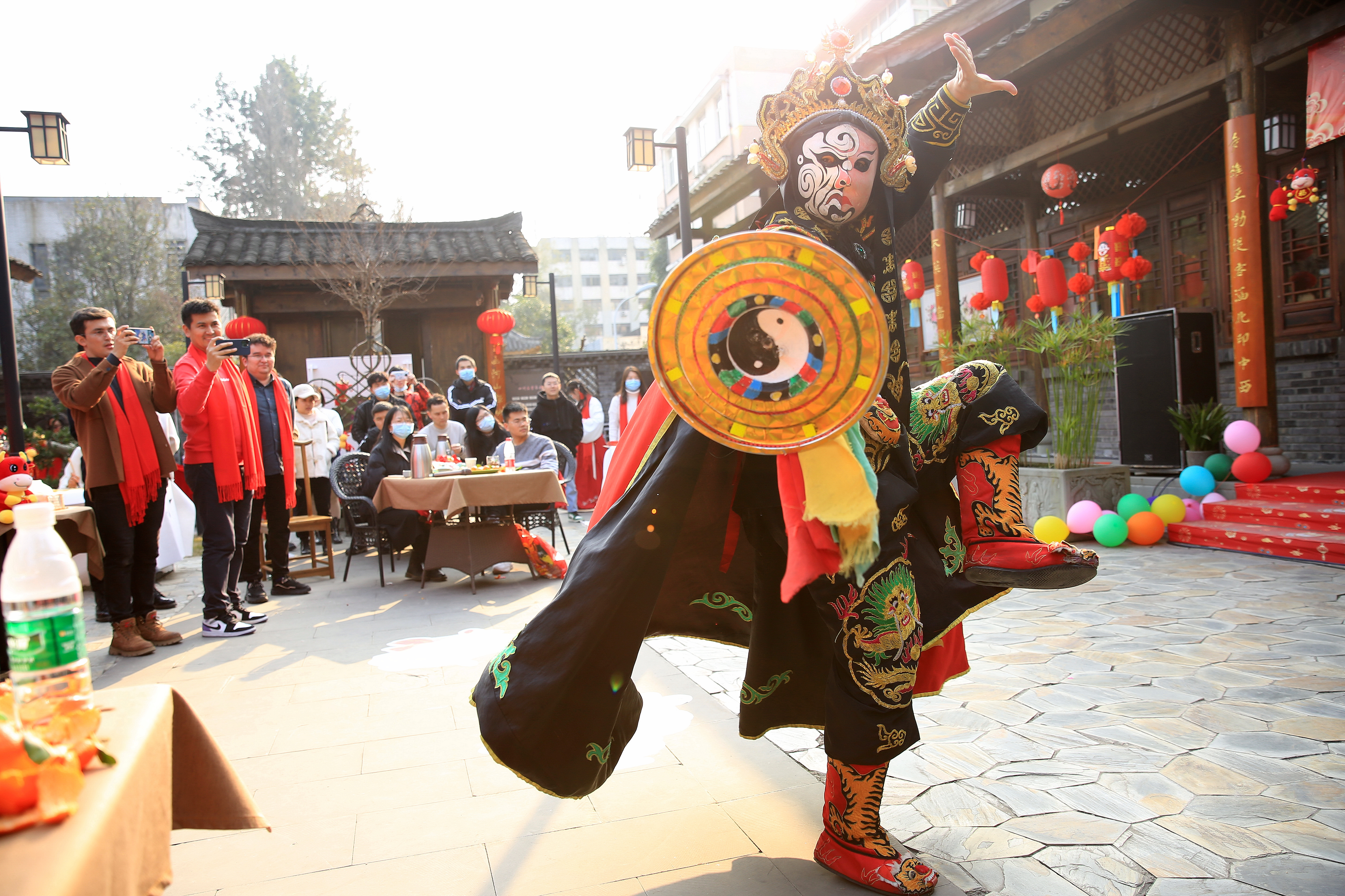 伴随悠远绵长的音乐,教导员老师带来的太极拳表演,动静自如、开合有序;功夫茶艺表演,目不暇接的招式与音乐的顿挫相得益彰;川剧变脸,脑袋一转,眼睛一眨,精妙绝伦。
