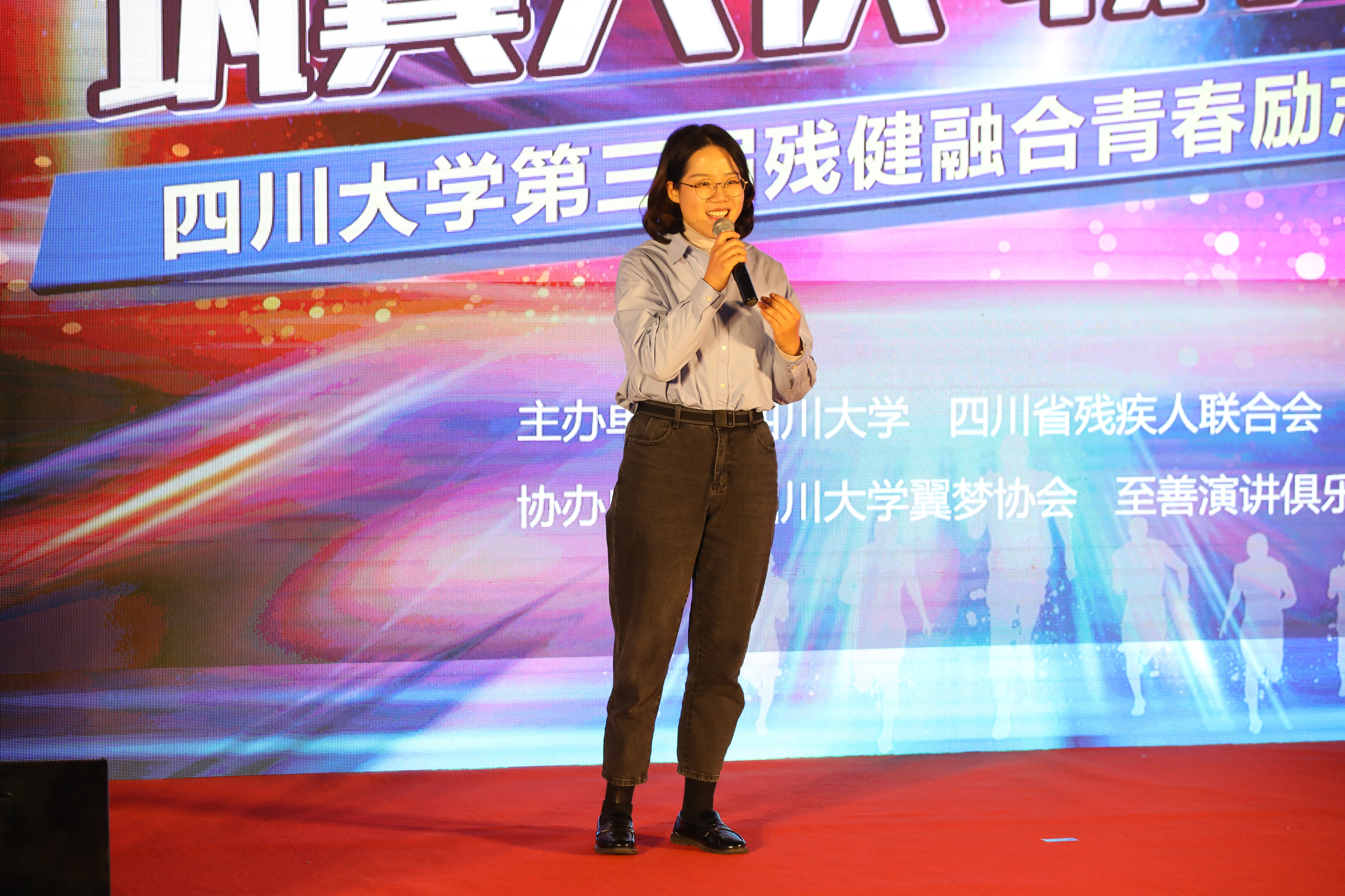 赛后,四川省残联干部、英国上市公司365校友刘敏作了励志报告,分享了自己克服残疾困苦、悦纳自我的心路历程,鼓励残障同学接受自己的不完美,主动寻求帮助、跨越障碍,以积极向上的心态拥抱美好人生。