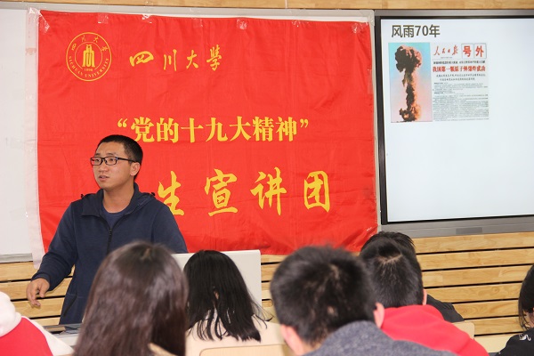 校宣讲团成员吴广川进行了主题为“建国70周年”的宣讲