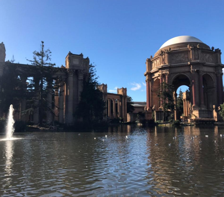 来到艺术宫,同学们都被这片精致宏伟的建筑深深吸引。这是一座为了巴拿马“太平洋万国博览会”所盖的宫宇,有着恢宏的宫殿与长廊,精美的雕饰。同学们在此观赏古罗马式风格建筑的特征,对比其与中国古典建筑的截然不同。