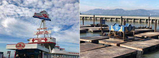 同学们还游览了坐落于旧金山北部水域哥拉德利广场到35号码头一带的渔人码头,这里原是意大利渔民聚集的渔港。在这里,同学们观赏各式各样的特色建筑,在感受船上风光的同时,也深入了解了这一带的历史。海边的风光、特色的龙虾和螃蟹、进出港繁忙的渔船与憨厚可爱的海狮,都给同学们留下了美好而深刻的印象。