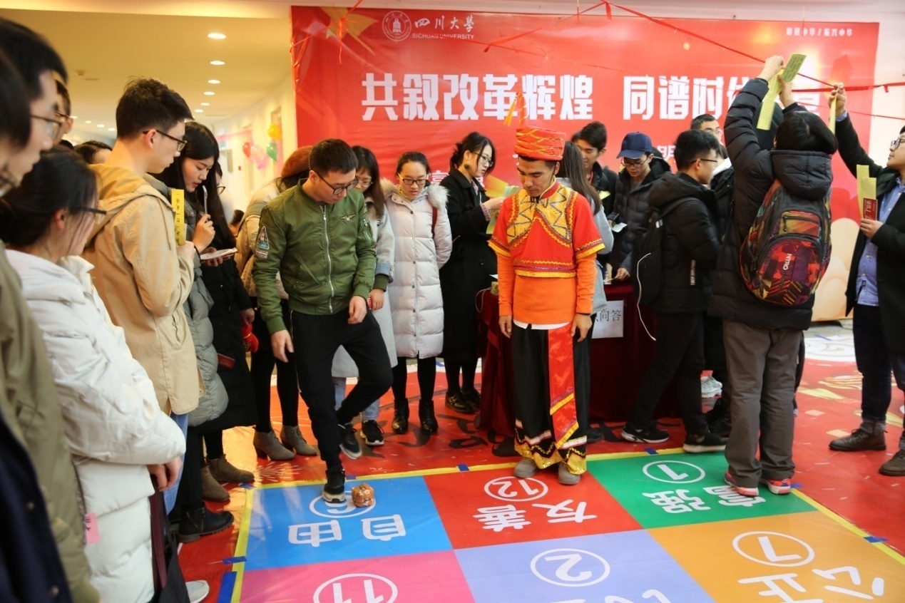 戊戌拂去,已送走昔日时光;己亥吹来,将带来耀眼希望。2019年1日30日下午,学工部资助中心以“锦江春色绘大业·川大学子迎新春”为主题,在望江校区文华活动中心二楼举办寒假留校学生新春游园联欢活动,传递党和国家温暖,传承中华传统文化,300余名留校学生欢聚一堂,开启年味儿十足的川大年。