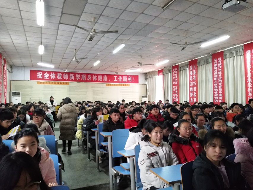 27日上午7点30分,当大多数人还在睡梦中,小县城的街道依然冷清,学生资助宣传大使陈灿已乘坐一个小时的公交车回到高中母校,与来自其他高校的返乡宣讲志愿者汇合,提前达到活动场地进行放映设备的调试、张贴海报等准备工作。经过一小时的前期准备,8点30分,活动准备就绪,光山二高高一9班、10班、11班、12班的300余名同学陆续进场。8点40分,宣讲活动正式开始。