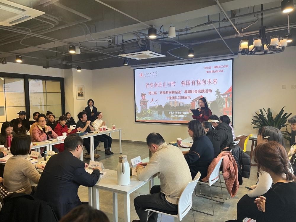 12月15日下午,第三届“寻找共同的足迹”暑期社会实践活动十佳团队答辩展示暨同心圆第38期活动在学校国家双创示范基地209成功举办。学工部、研工部、校团委、科研院、社科处、教务处、关工委相关负责人担任答辩展示活动评委,民族办、资助中心全体老师,各族同学近50人参加了此次活动。