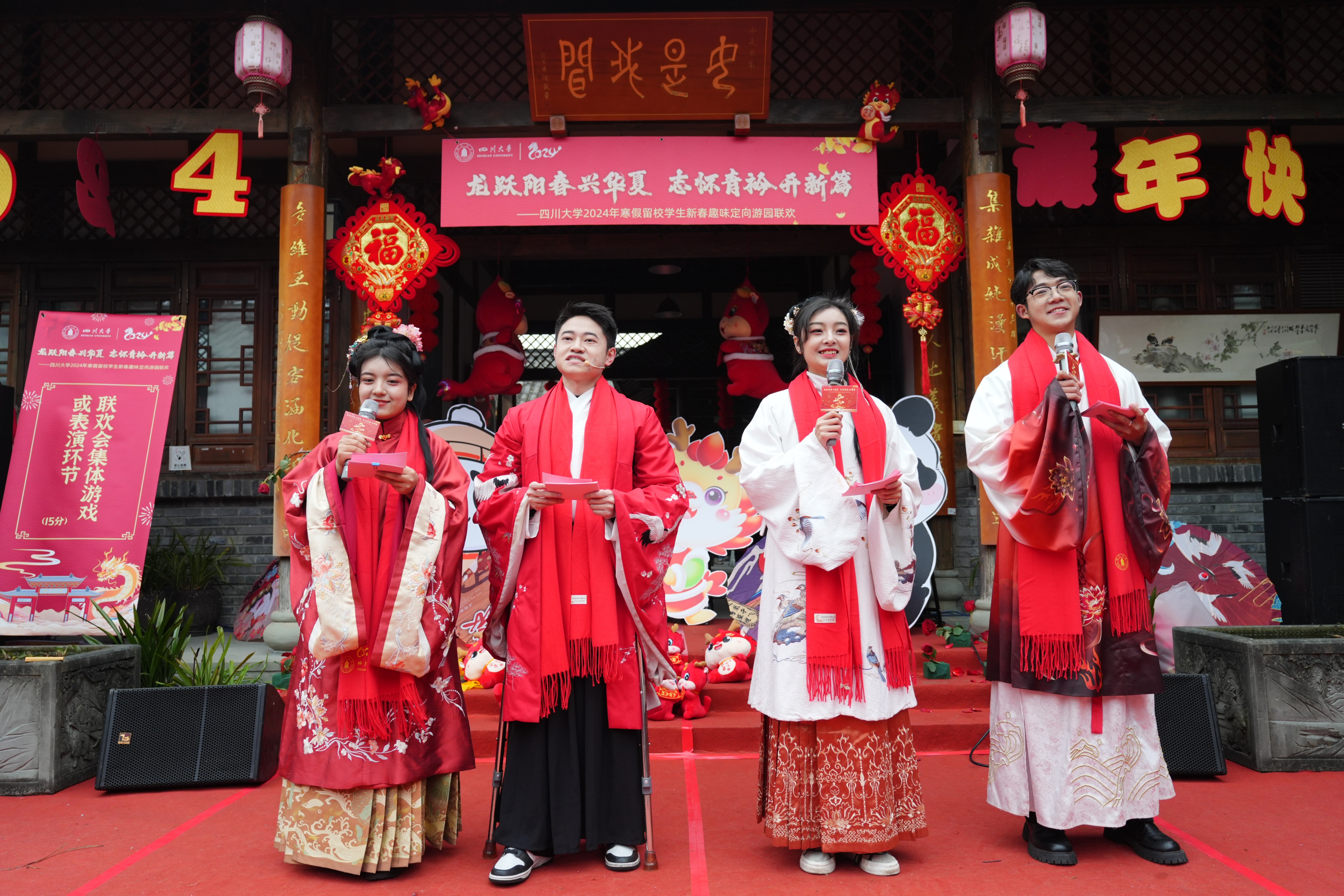 玉兔逐月留清辉,金龙腾云送祥瑞。为传递党和国家春天般的温暖,丰富寒假留校学生的校园生活,弘扬传统文化,厚植家国情怀,学校于2月2日北方小年之际在望江校区中华文化研究院举行“龙跃阳春兴华夏,志怀青衿开新篇”留校学生趣味定向游园联欢活动。校党委副书记刘晓虎与学校相关部处负责人同留校学生欢聚一堂,共迎农历甲辰新年。