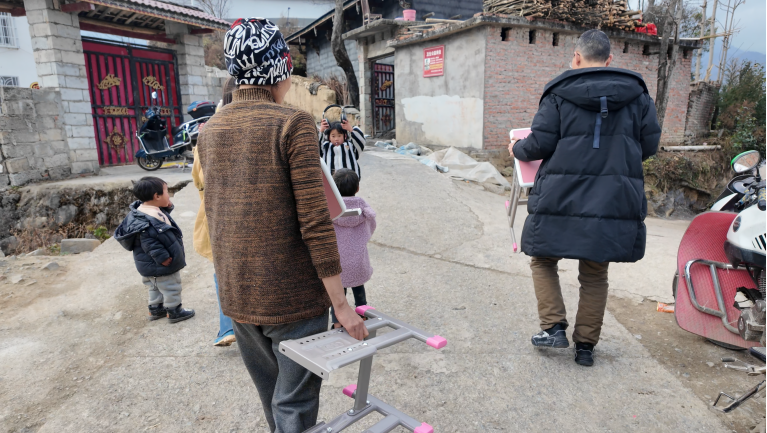 通过前期调研,志愿者了解到甘洛县、昭觉县等地农村小学生家中普遍缺少写字桌椅。在家里写作业时,有些孩子趴在门口的台阶上写字,有些孩子蹲在椅子旁写字。为给孩子们搭建家庭“学习空间”,馨心社自2021年开始,每年使用大型校园公益活动“把爱传承之青春义卖”筹集到的善款开展公益帮扶,为昭觉县和甘洛县的孩子们送去“馨心书桌”,帮助小学生养成良好的写字习惯,保护视力与脊椎。2023年12月,120套“馨心书桌”经过一路的跋山涉水来到昭觉县与甘洛县。学校研究生支教团昭觉分团志愿者和学校派驻干部向丹老师一起将“馨心书桌”组装好后,近期陆续送到孩子们家中。每一位收到“馨心书桌”的孩子,都会第一时间兴奋地体验自己的专属学习桌椅。