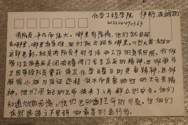 通过此次观影活动,不仅向同学们普及了防灾减灾知识,增强了防灾减灾意识;同时也让同学们深深致敬用生命守护着国家和人民安宁的消防员,深刻理解“人民军队为人民”的内涵。