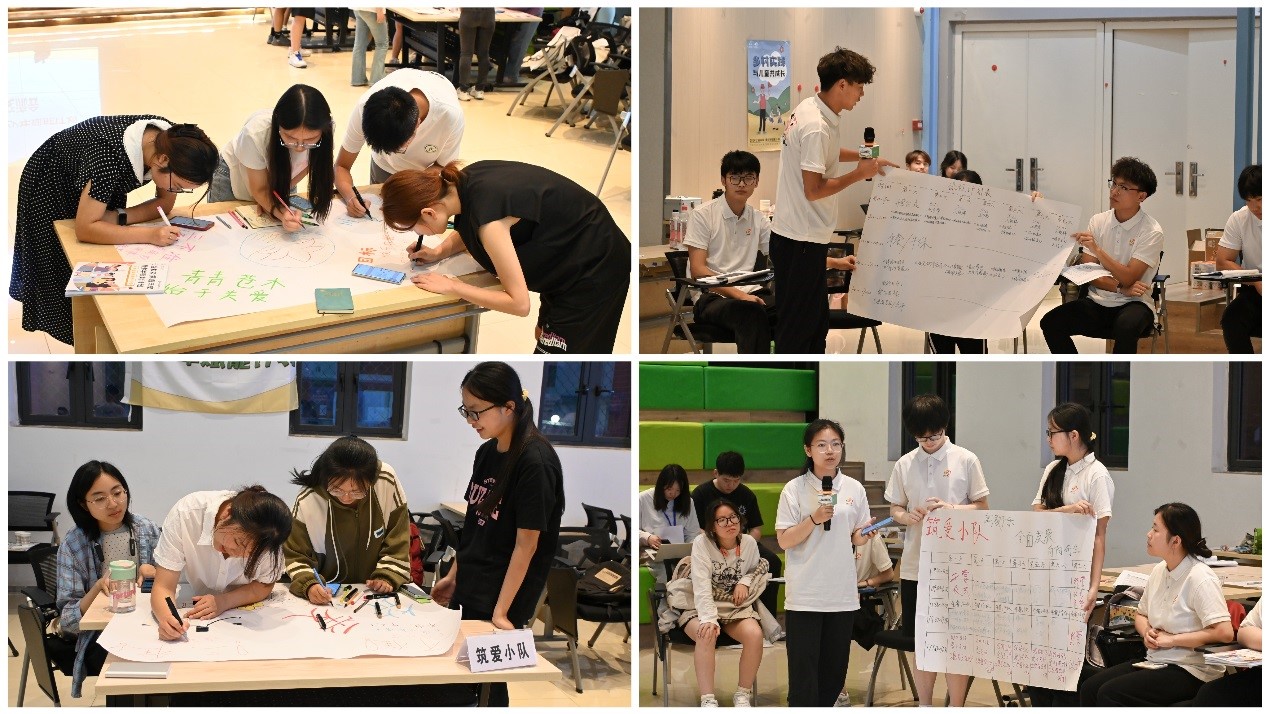 活动第一天,在社会体育指导员、心理咨询师陈蓉老师的带领下,8支团队在队徽设计、队旗制作、团队纪律制定中进行了团队建设。陈蓉老师还把团体心理辅导融入到实践团队的建设中。
