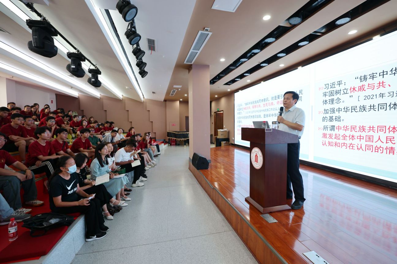为进一步深化民族团结教育、铸牢中华民族共同体意识,9月10日上午,马克思主义学院教授、博士生导师李辽宁在江安校区致远报告厅围绕中华民族共同体意识培育为2024级少民预科班全体新生讲授了开学第一课。