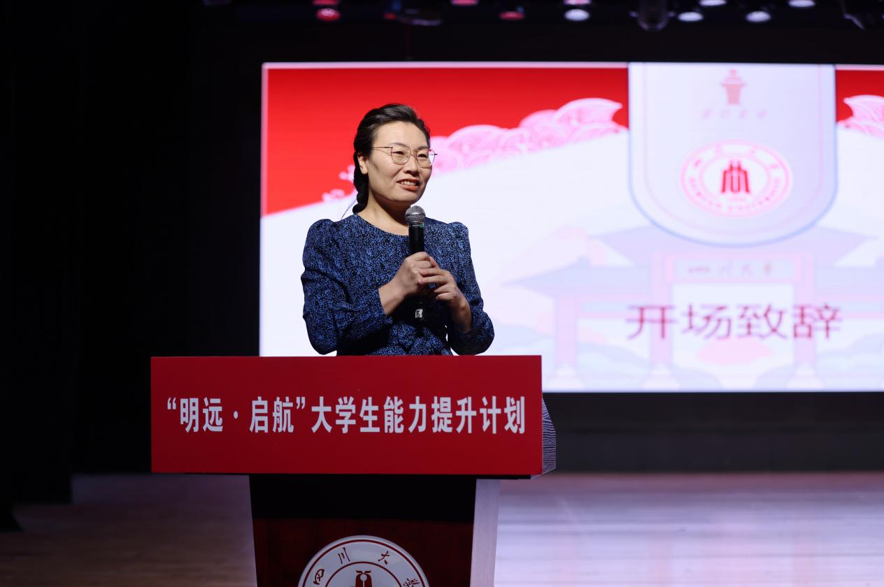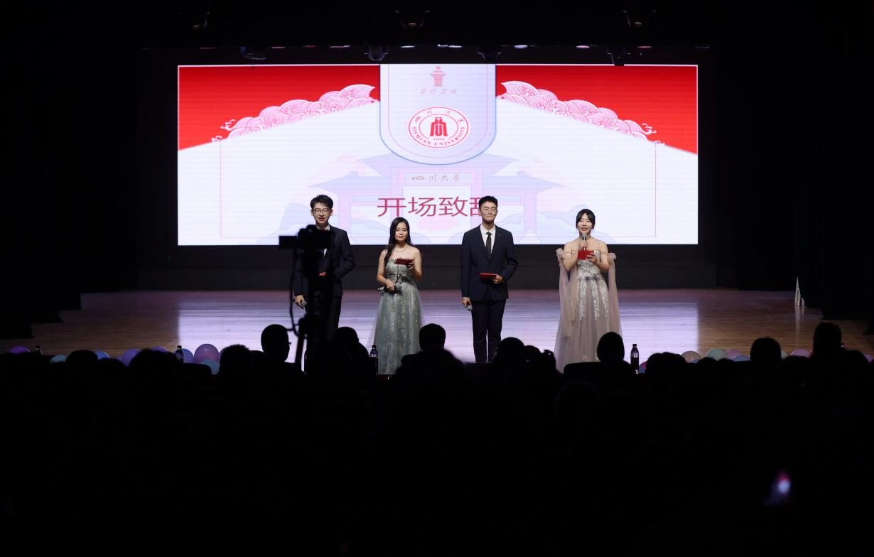为落实立德树人根本任务,深化资助育人,展现资助成效,以丰富多彩的形式庆祝新中国成立75周年,1025日晚,学校“明远·启航”大学生能力提升计划第十二期总结大会暨第十三期开班仪式在江安校区艺术学院小剧场举行。学工部、教育基金会、关工委、学生教导员等单位相关工作负责人与课程教师,以及400余名同学参加了此次活动。活动由主持与表达课程学员陈建行、覃慧敏、严思怡、李雪飞主持。