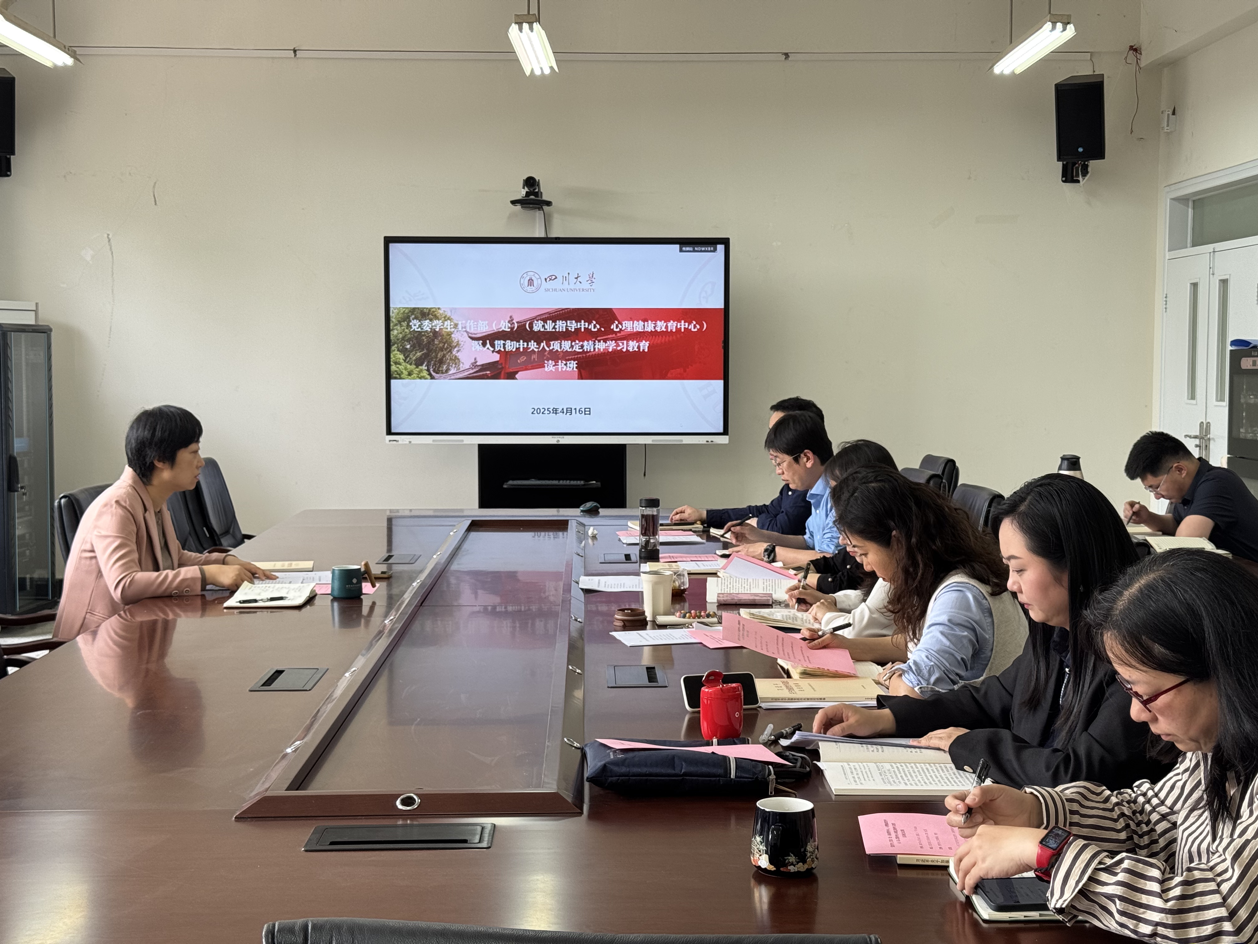 4月15日-16日,党委学生工作部(处)(就业指导中心、心理健康教育中心)在望江校区文华活动中心举行深入贯彻中央八项规定精神学习教育读书班。部门班子成员参加学习,读书班由党委学生工作部(处)部长、第一党支部书记熊伟主持。