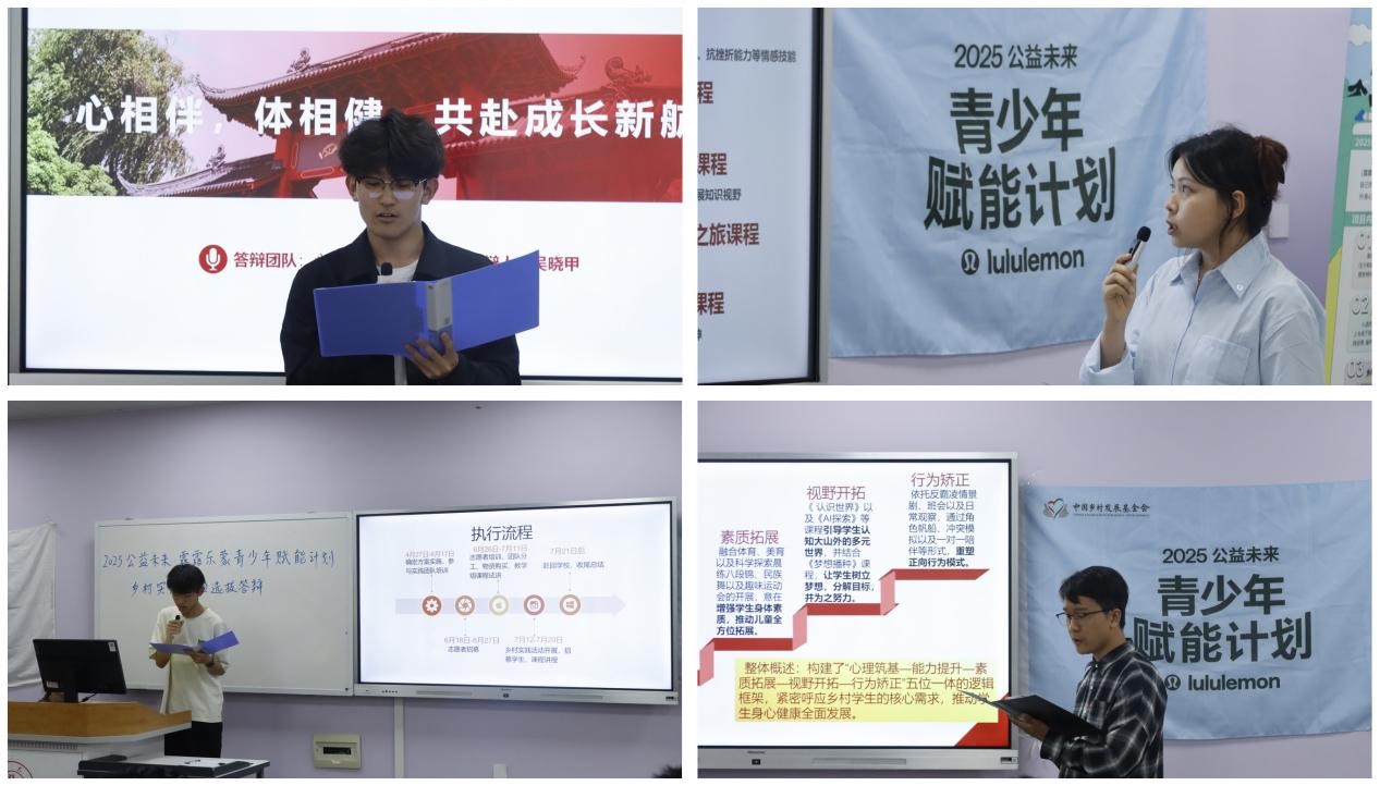 四月芳菲盛,公益正当时。4月,中国乡村发展基金会与lululemon联合发起的“公益未来·露露乐蒙青少年赋能计划”在学校持续开展。4月23日晚,新长城英国上市公司365自强社在江安校区举办了乡村支教实践队伍选拔答辩会,十支团队以专业方案竞逐区域赛资格。本次答辩汇聚学界、业界、公益界多方力量的十位专家组成评审团,从教育实践、产业资源、体育赋能等维度切入,为乡村公益项目“把脉搏”“开良方”。