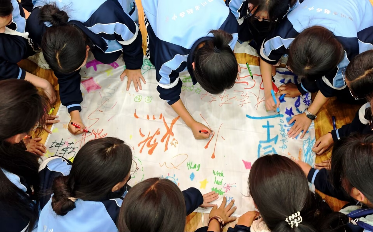 见面会尾声,七支小队开展队旗设计活动,在志愿者的带领下,高中生举起手掌比划轮廓,握着彩笔勾勒创意,“星火燃梦”“凌云直上”等充满力量的队名在欢声笑语中诞生,一面面彩旗成为团队精神的象征,也为次日活动埋下期待的种子。