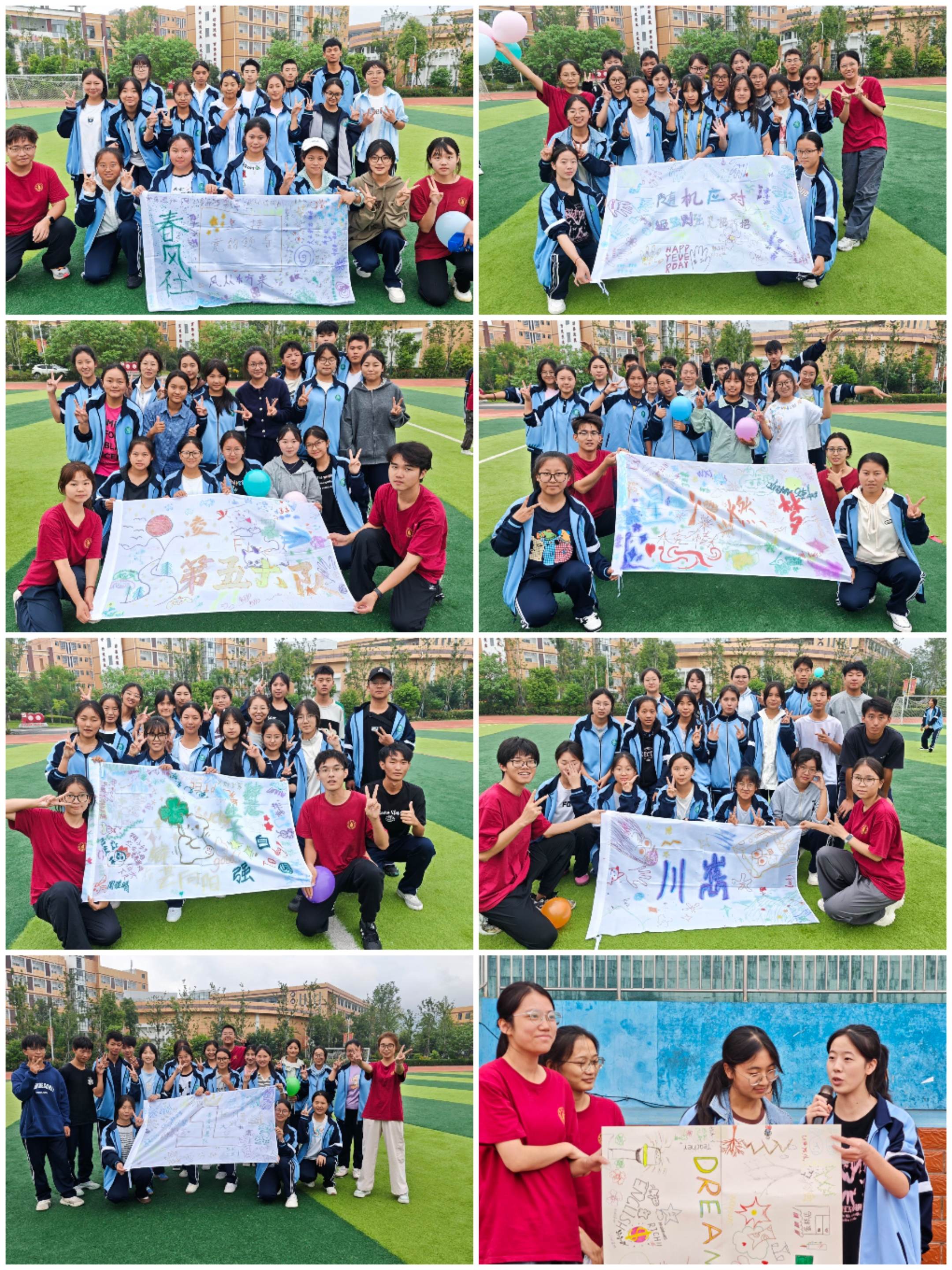 9月13日,公益行动进入高潮,成长的蜕变在运动与分享中悄然发生。上午,14名志愿者小队长带领高中生开展素质拓展:“四人五足”让大家在相互搀扶中学会协作,明白“遇到难走的路,同行者就是底气”;“背对背夹气球”让大家在欢笑中缓解学业焦虑,感受到“放下焦虑,才能跑得更稳”;“卡牌风云”在策略博弈中培养冷静思考能力,教会大家“面对难题,冷静思考就是解法”。在“梦想分享”环节,高中生打破了羞涩与内敛的壁垒——在运动带来的松弛感中,高中生们勇敢走上舞台,指着画纸上亲手绘制的梦想符号,大声宣告:“我要鱼跃龙门,不做躺平的咸鱼!”稚嫩却坚定的声音,展现出青春冲破迷茫的力量。