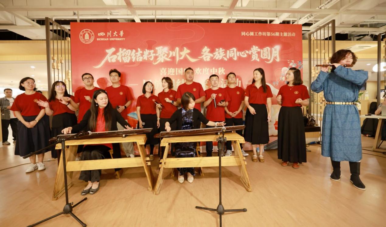 9月27日晚,为欢庆西藏、新疆发展成就,喜迎中秋、国庆佳节,学工部在江安校区以“石榴结籽聚川大 各族同心赏圆月”为主题,组织各族师生举办了喜迎国庆、共度中秋的主题晚会。在欢声笑语中,各族师生共同书写了一段关于团结、传承、奋进的温暖记忆。