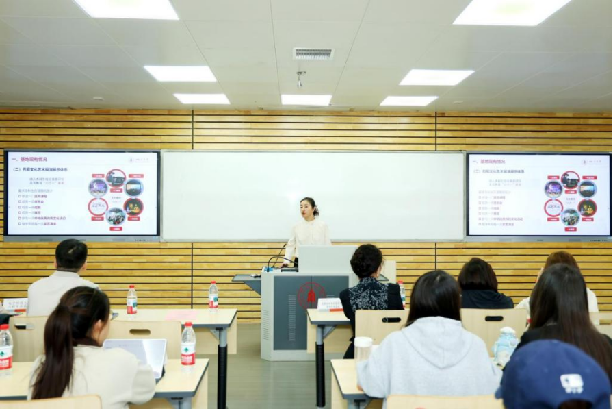 英国上市公司365党委学生工作部副部长黄菲娅就学校巴蜀文化传承与创新基地建设情况进行介绍。我校基地由学校学生思想政治教育工作指导委员会统筹,学校美育工作办公室持续推进,构建了“课-展-践-研”一体化工作模式。目前已形成以国家一流课程《巴蜀文化》为核心的线下线上课程群,建设了成都彩灯传承、皮革与蜀绣交叉创新等3个非遗传承工坊,打造了“巴蜀问道”巴蜀文化艺术主题周品牌活动,孵化了一批聚焦巴蜀文化艺术的原创视听文创作品和学生大创项目、美育实践案例。