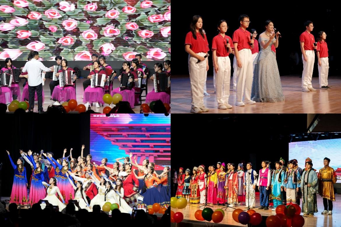演出尾声,氛围推向高潮。手风琴合奏《我和我的祖国》以熟悉旋律唤醒家国情怀,民族舞《再唱山歌给党听》用优美舞姿描绘民族团结的美好画卷,朗诵《诗意中国》则以深情告白传递对祖国的赤诚热爱。最终,全场在望江声乐班《天耀中华》的恢宏歌声中落下帷幕,激昂的旋律里满含对祖国的深切祝福,为展演画上圆满句点。