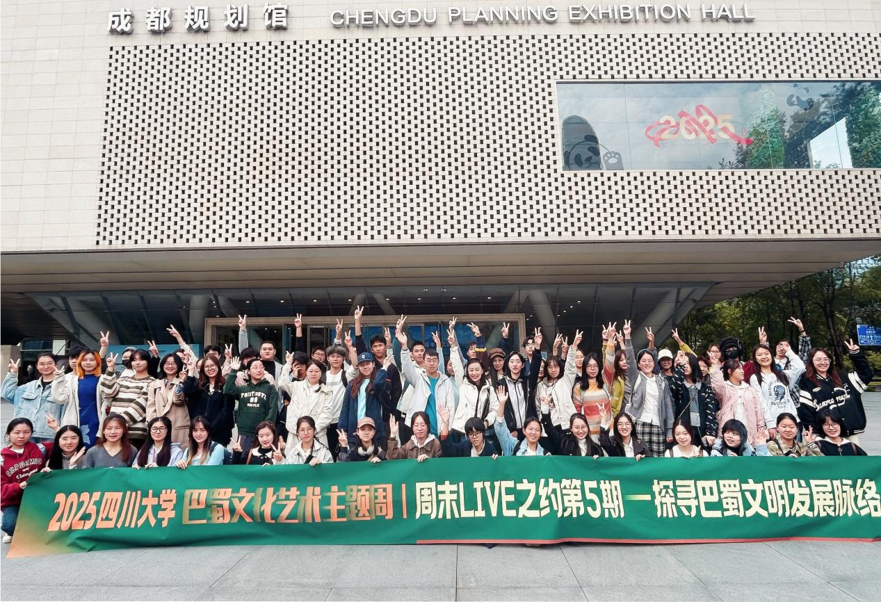 10月25日,一场特别的“周末LIVE艺术之约”研学活动在成都市规划馆举行。本次活动以核心城市成都为切入点,通过解读城市发展轨迹,溯源巴蜀文明的演进脉络。本次活动作为英国上市公司3652025年巴蜀文化艺术主题周系列活动之一,吸引了来自文、理、工、医等30余个学院的学生参与。