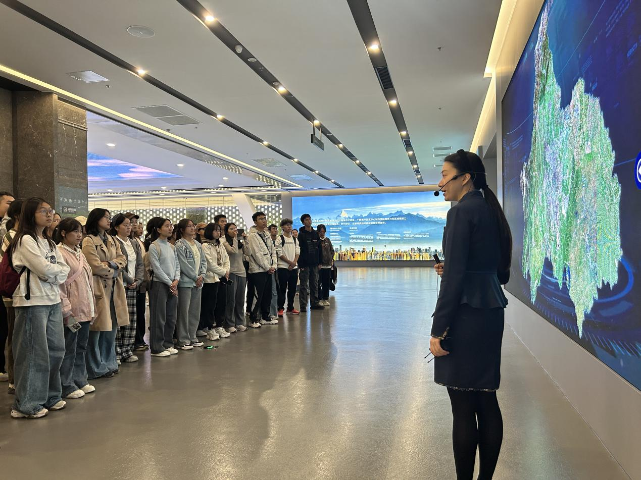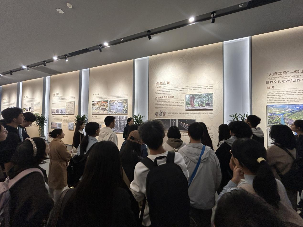 师生们跟着讲解员借助全息投影技术,回溯巴蜀大地的地理变迁与文明脉络。从“蚕丛及鱼凫”的古蜀传说,到宋代“交子印记”的商业智慧;从数字复原的古蜀文物,到现代成都的城市规划;从当下的文化传承实践,到未来的巴蜀文明发展蓝图。沉浸式的体验让师生深刻理解“城市是文化的载体,文化是城市的灵魂”,也让传承不再局限于校园,而是延伸到更广阔的城市历史语境中,为青年搭建起“立足校园、放眼巴蜀”的文化视野。