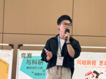 科研竞赛组小导师,来自机械工程学院的王炳钦和计算机学院的郭睿明两位同学带来了题目为“竞赛与科研——解锁大学进阶之路的隐藏关卡”的辅导。他们以自身的科研竞赛经历为例,讲述了以竞赛为依托促进科研启蒙及成长的故事,简要介绍了“国创赛”“大小挑”等赛事,以及“大创”项目等,分享如何从兴趣启航、以科研赋能学业成长,引导新生探索“1+X”的学习成长路径。